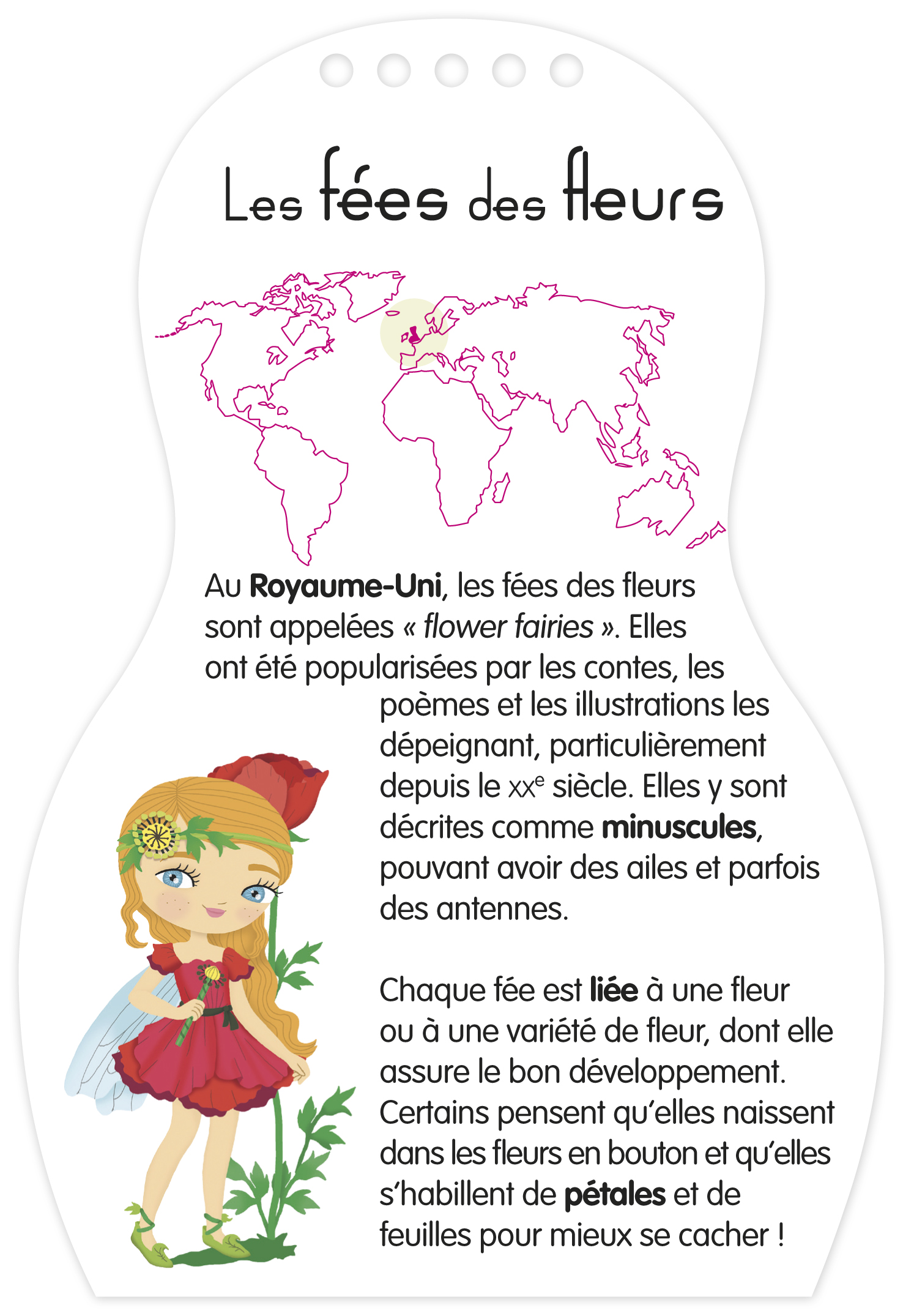 Dans ce carnet, colorie, habille et découvre l’histoire de 5 fées : les fées des fontaines en France, les azizas du Bénin, les fées des fleurs du Royaume-Uni, les Péris du monde perse et arabe, les Diwatas des Philippines.