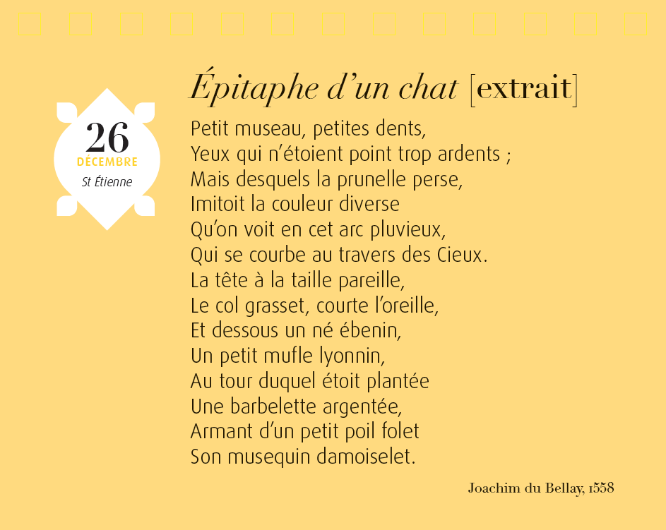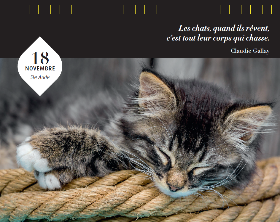 GEO vous accompagne pour un tour du monde des plus belles photos de chats et chatons, découvrez également des citations d’artistes inspirés par ces félins aussi tendres qu’indépendants. Format calendrier chevalet, une page par jour.