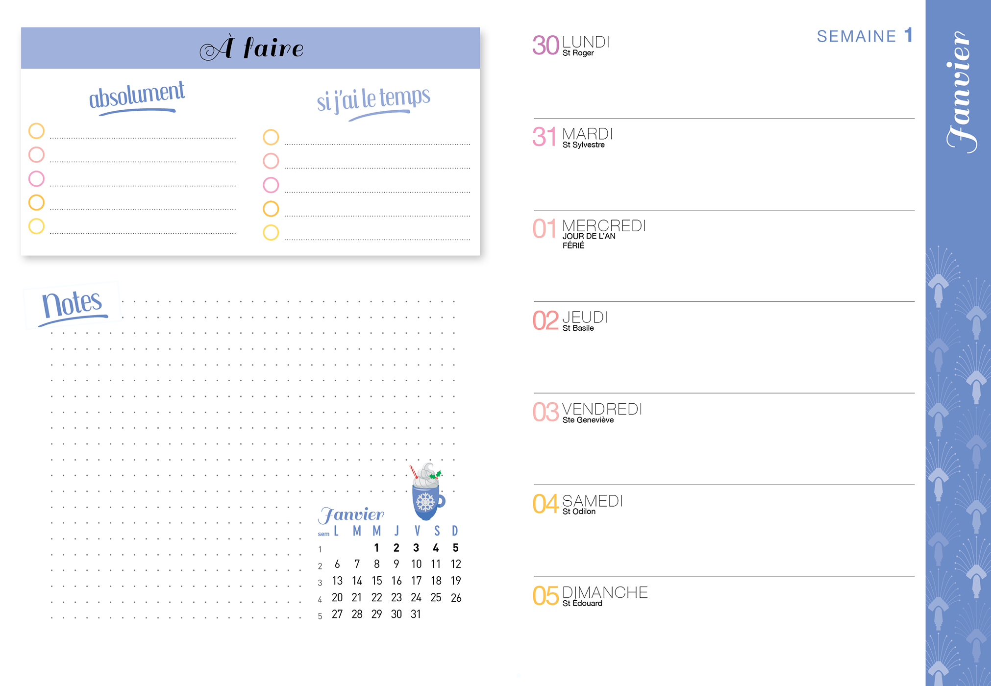 – 1 agenda hebdomadaire pour tout noter et ne plus rien oublier