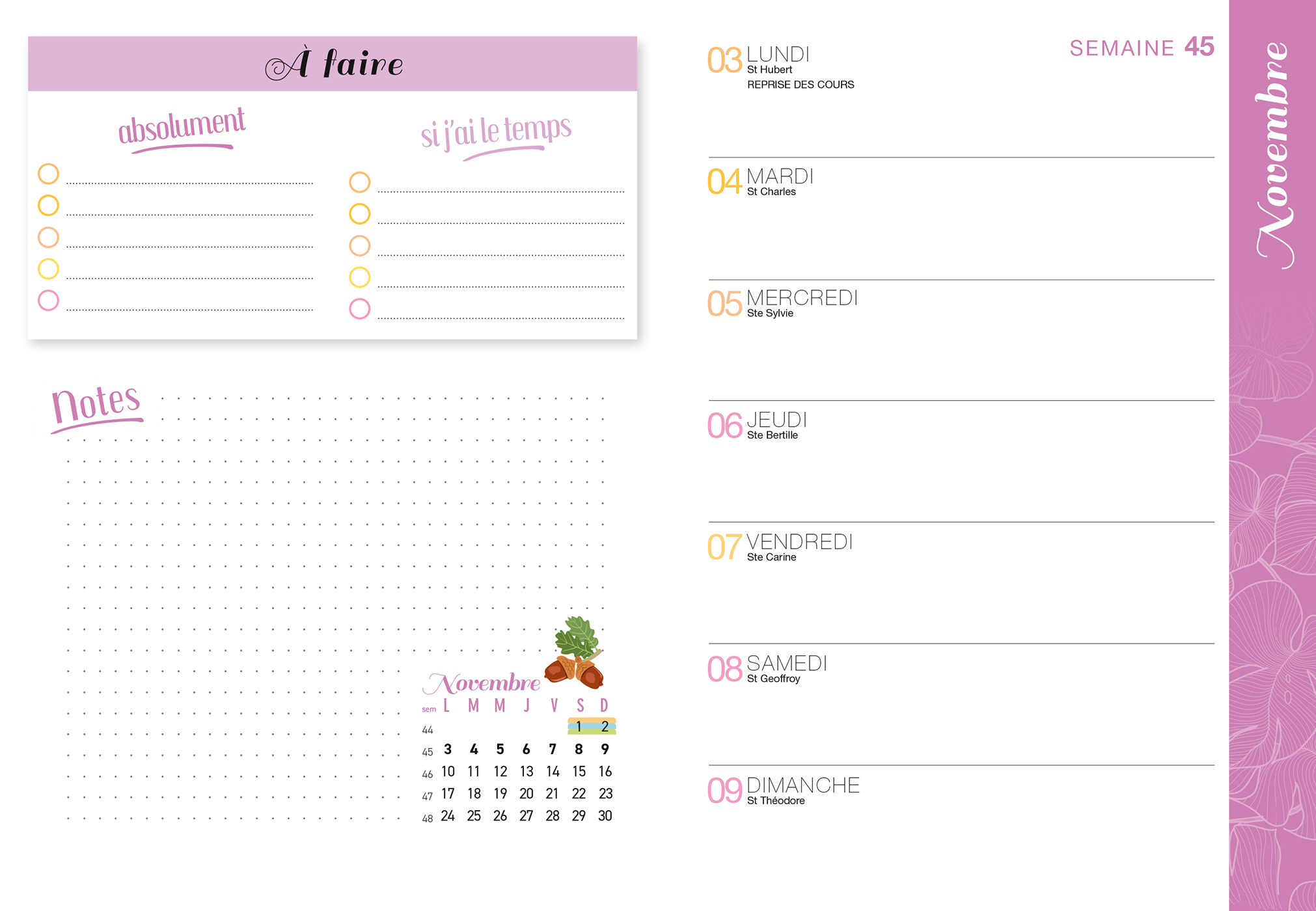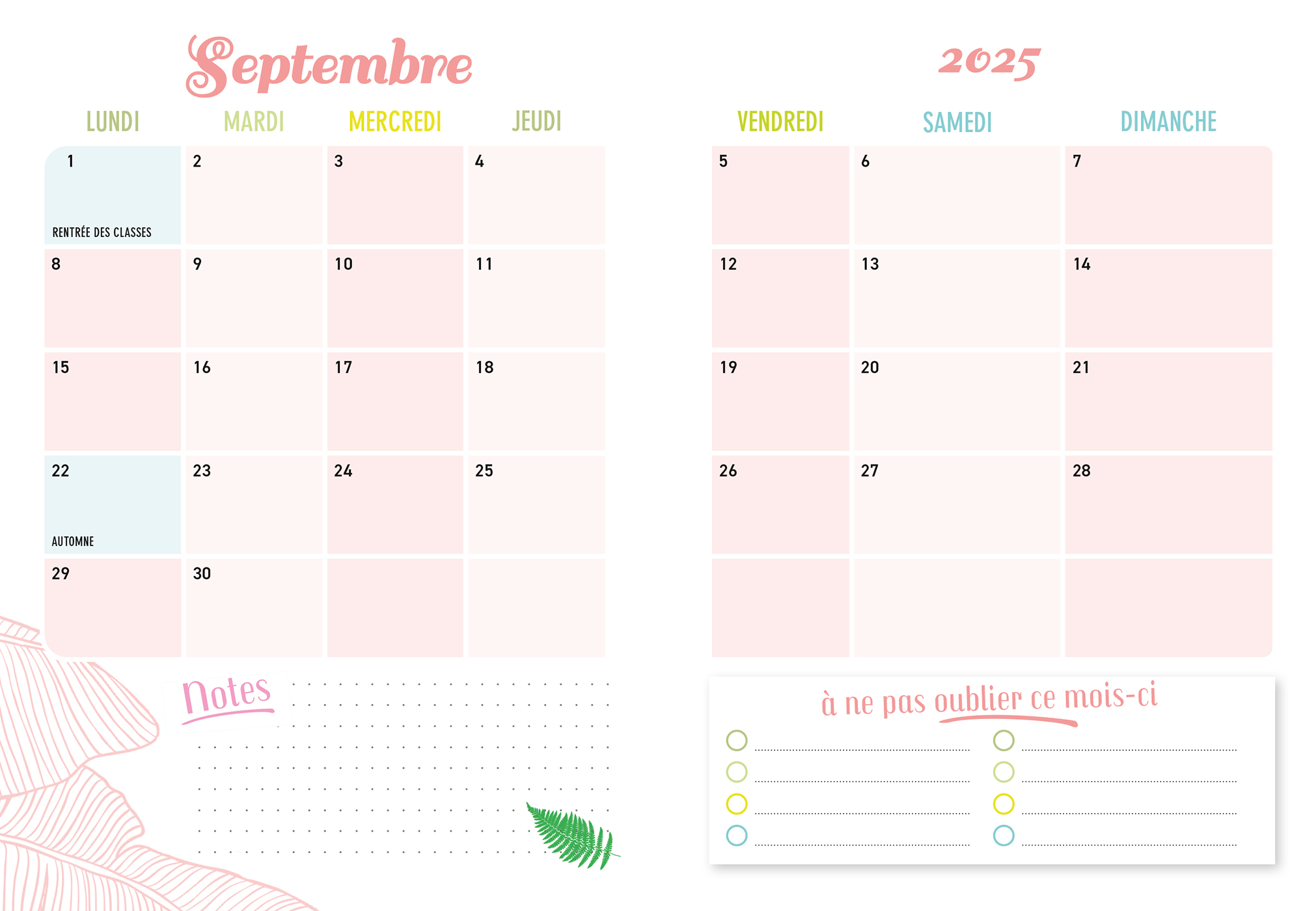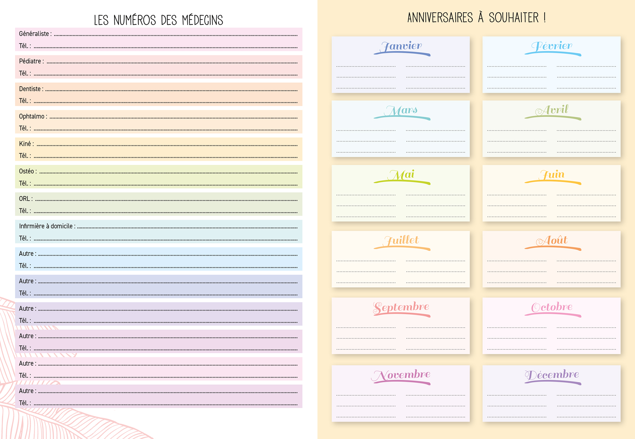 – 16 plannings mensuels pour s'organiser à l'avance,