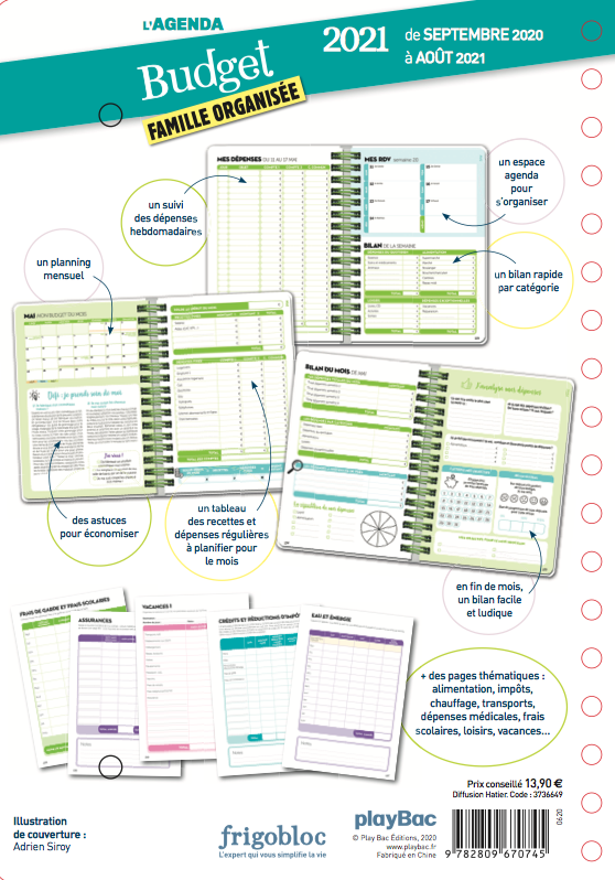 Un agenda malin pour bien gérer son budget ET s'organiser ! Chaque mois : le tableau de suivi des dépenses (dépenses et recettes fixes + spécifiques), des astuces et conseils pour économiser et un agenda mensuel pour noter ses principaux RV. Chaque semaine : un espace agenda supplémentaires et les dépenses de la semaine. Malin : à la fin de l'année, retrouvez des pages bilans pour suivre, anticiper et optimiser ses dépenses par grand thème (vacances, habillement, alimentation, téléphonie, frais de garde etc). De septembre 2020 à août 2021.