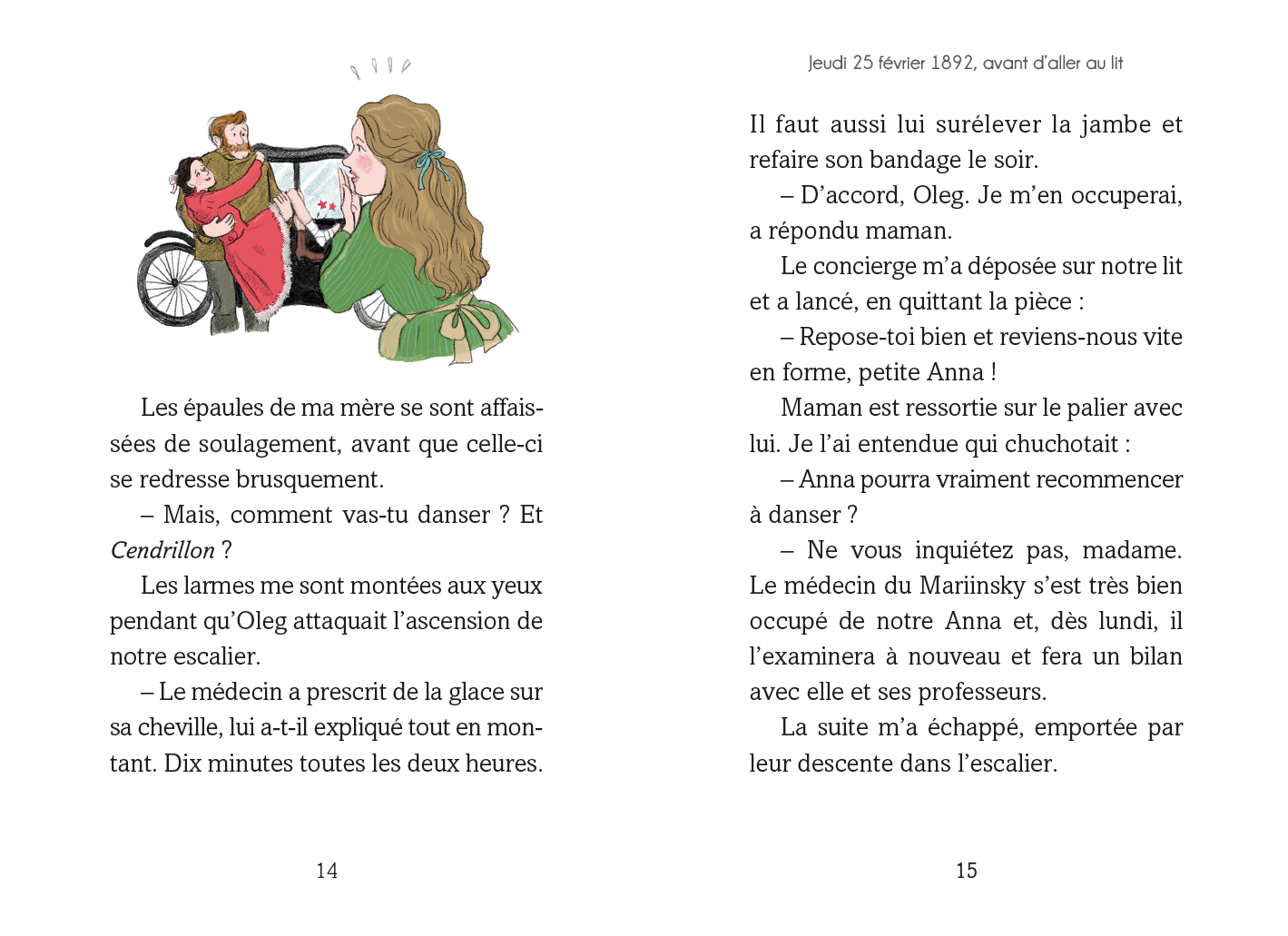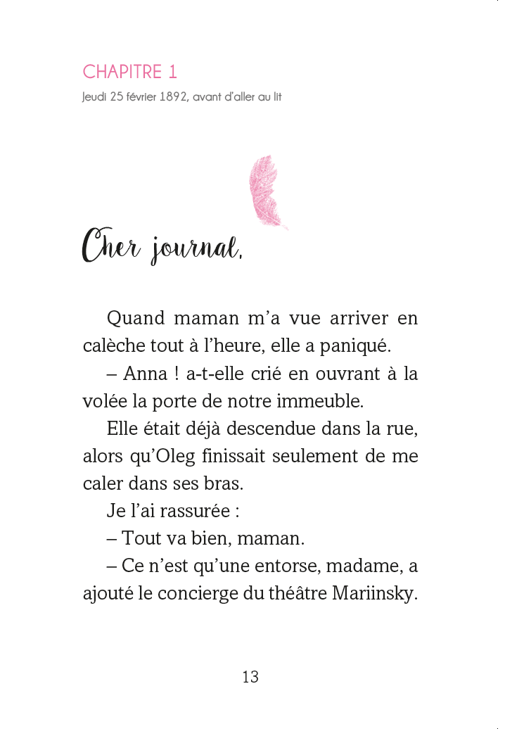 Jeudi, je me suis foulé la cheville, et j'ai interdiction de danser ! Le médecin du Mariinsky doit bientôt me réexaminer, et je tremble déjà d'entendre ce qu'il va m'annoncer. Cendrillon ou pas Cendrillon ? Pourrai-je remonter sur scène avec mon amie Galina pour la chorégraphie des petites souris ? Verdict demain matin.