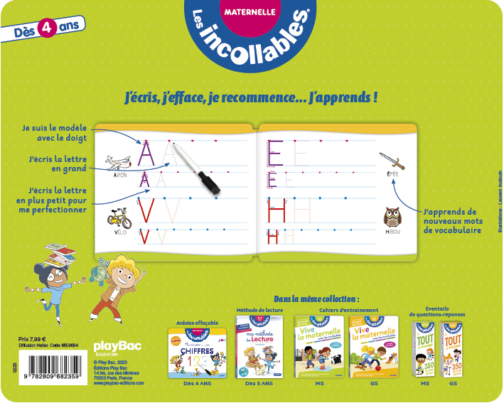 Apprends à écrire toutes les lettres de l'alphabet en majuscule avec l’ardoise effaçable des Incollables et deviens un expert comme Zoé et Luka !
