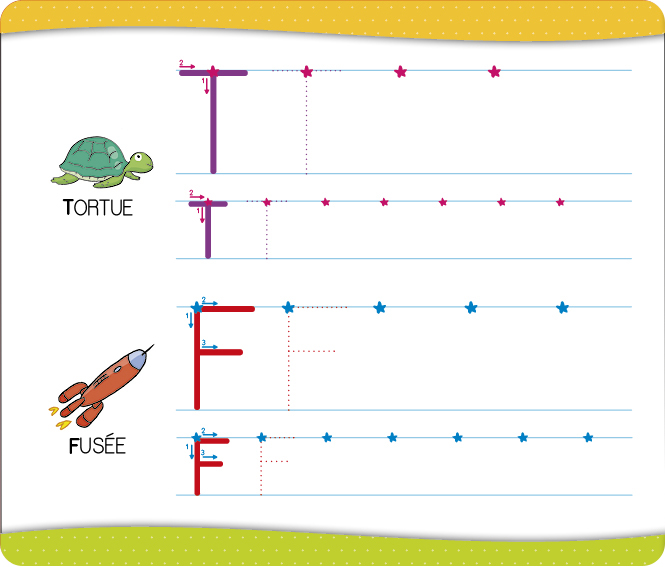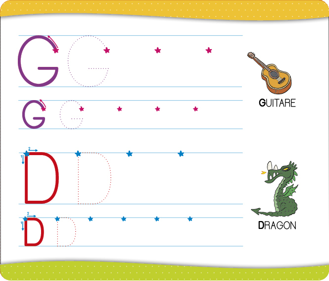Explore la lettre avec le doigt, écris-la dans deux tailles différentes, efface et recommence à l’infini ! Sur chaque double page, découvre et apprends de nouveaux mots pour enrichir ton vocabulaire.