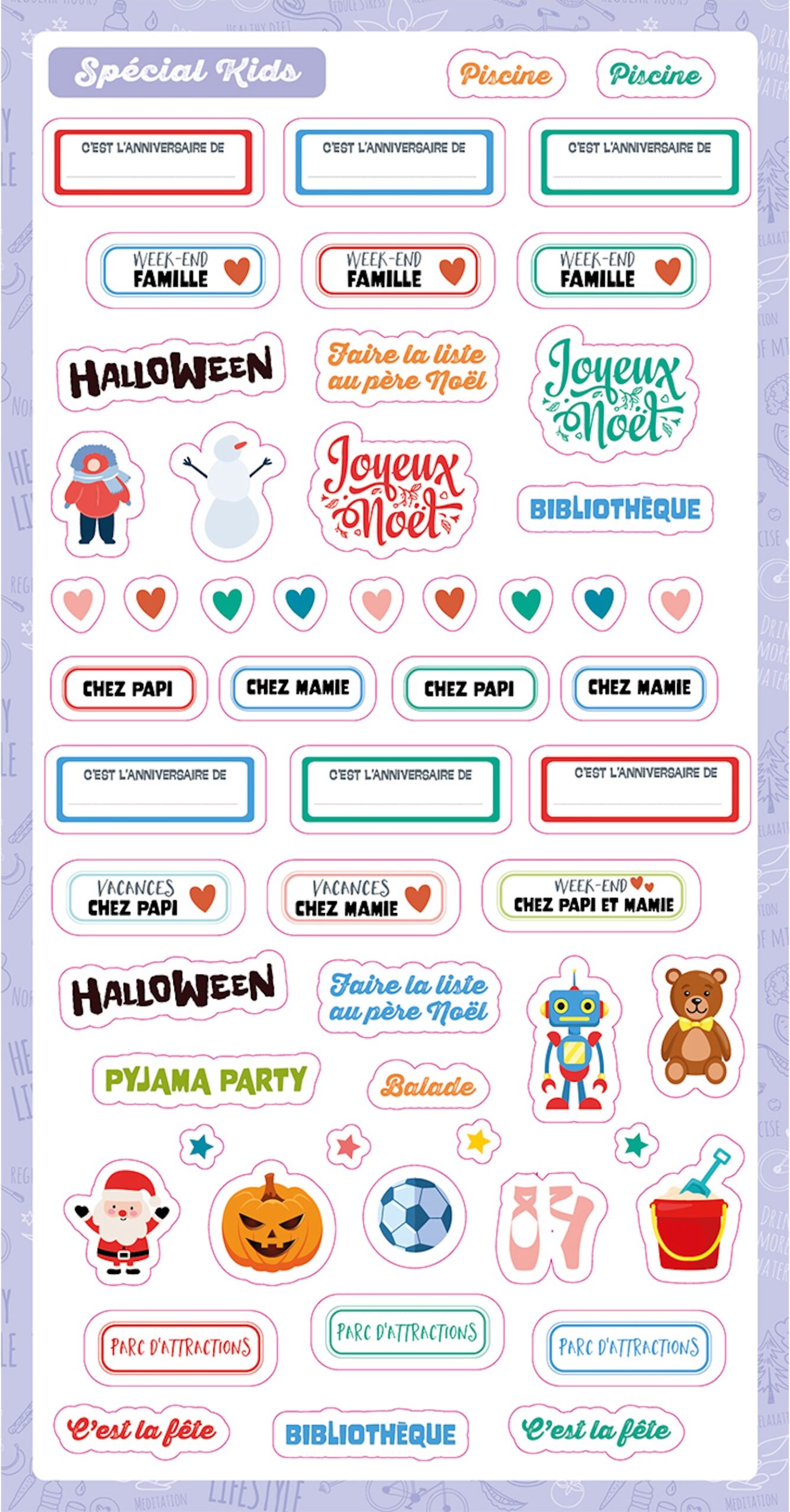 Un bloc de dix pages de stickers compatibles avec tous les calendriers et agendas d’organisation familiale pour décorer, mieux se repérer et ne rien oublier !