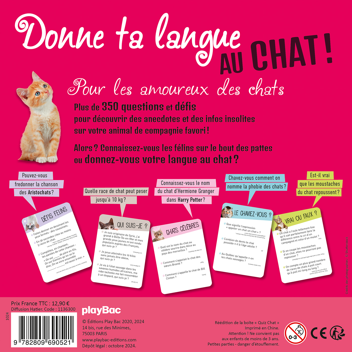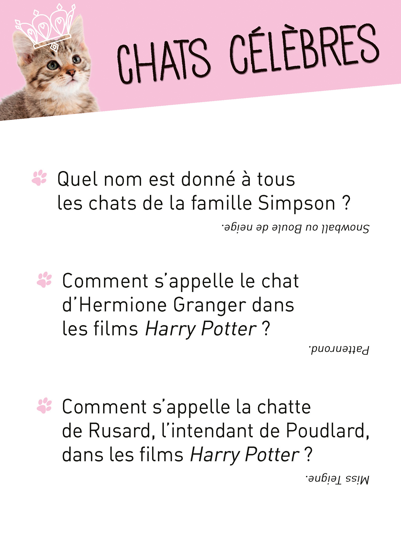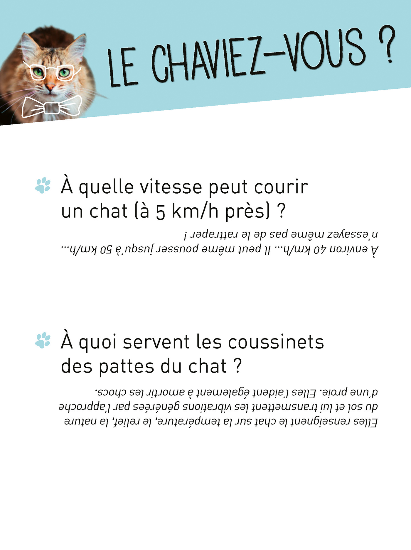 Pour les amoureux des chats, plus de 350 questions et défis pour découvrir des anecdotes et des infos insolites sur votre animal de compagnie favori !