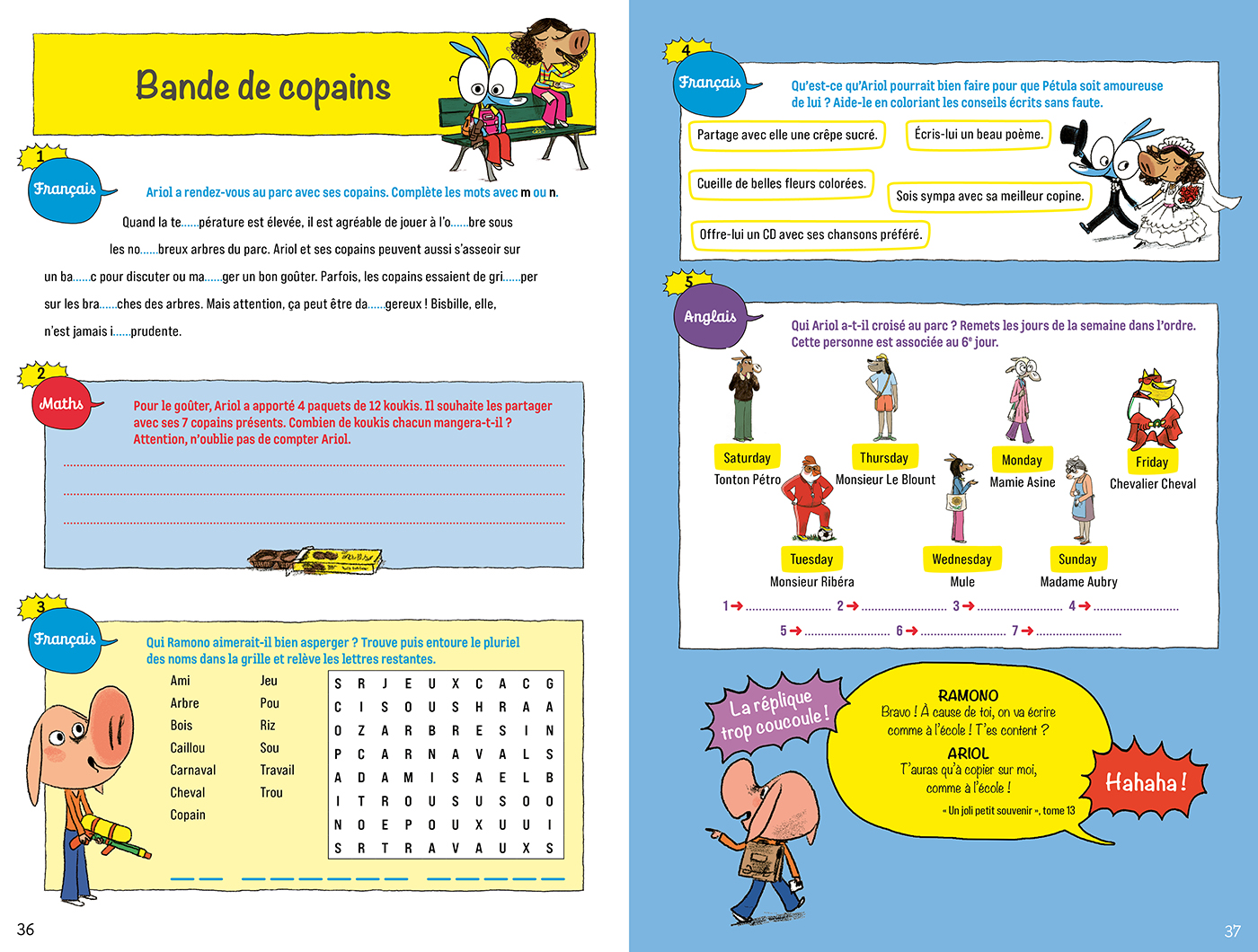 Ouvre vite ce cahier de vacances pour réviser en t’amusant avec Ariol et tous ses copains !