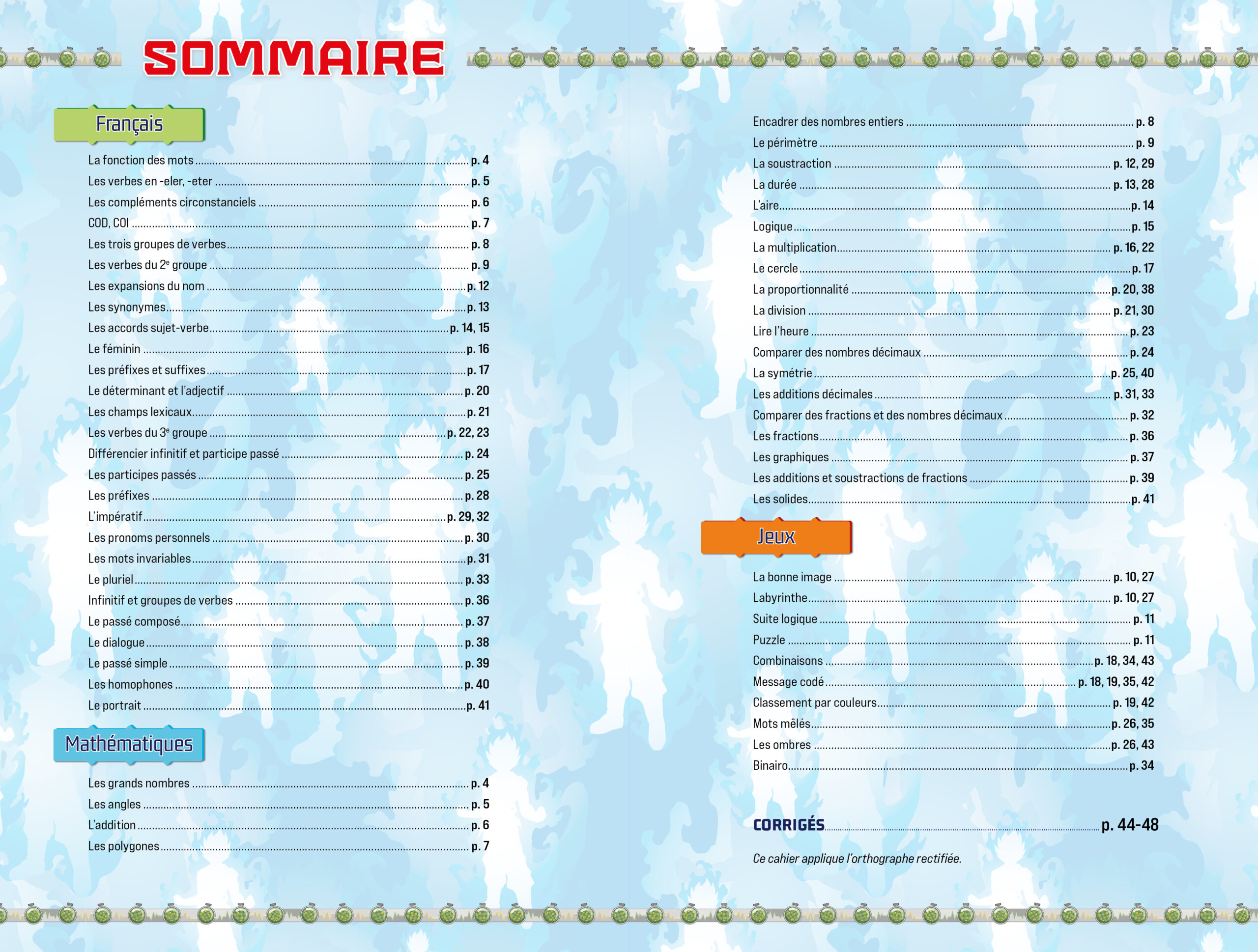 · Des exercices variés de français et de mathématiques pour s’entraîner.