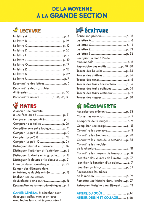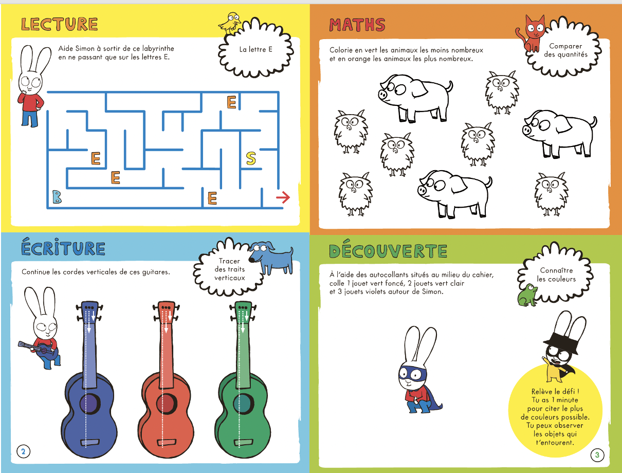 Un cahier de vacances complet pour réussir son entrée en grande section avec Simon et ses amis  !