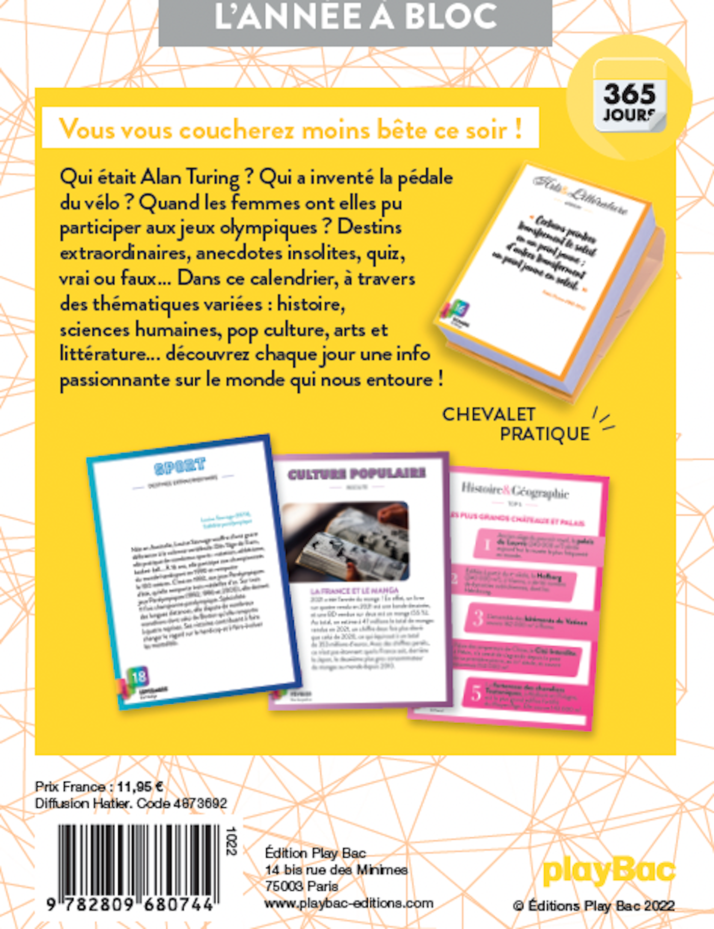 Pour trouver une librairie où acheter Calendrier 365 jours de Culture générale – Année à bloc, on vous invite à visiter le site Place des libraires !Place des Libraires