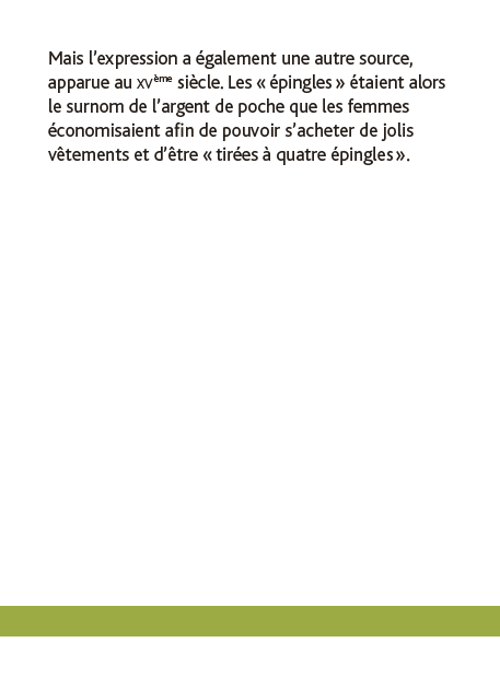 L’origine de nos expressions est souvent cachée au coeur de l’histoire de la France et de ses grands personnages, des parlers populaires, de la mythologie, du sport, de la gastronomie ou encore des arts. Ouvrir chaque jour ce recueil d’expressions triées sur le volet vous permettra de découvrir les trésors de la langue française… et on ne vous raconte pas de salades !