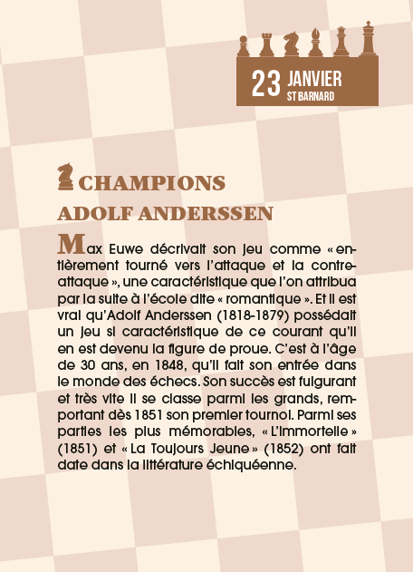 Pour tout savoir sur les joueurs célèbres, les parties et tournois mémorables, les échecs à travers le temps et dans l’art, les différents classements…