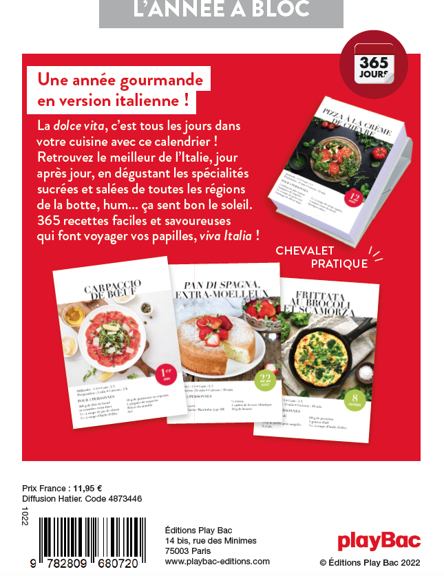 Pour trouver une librairie où acheter Calendrier Viva Italia, le top des recettes italiennes en 365 jours – L’Année à Bloc, on vous invite à visiter le site Place des libraires !Place des Libraires