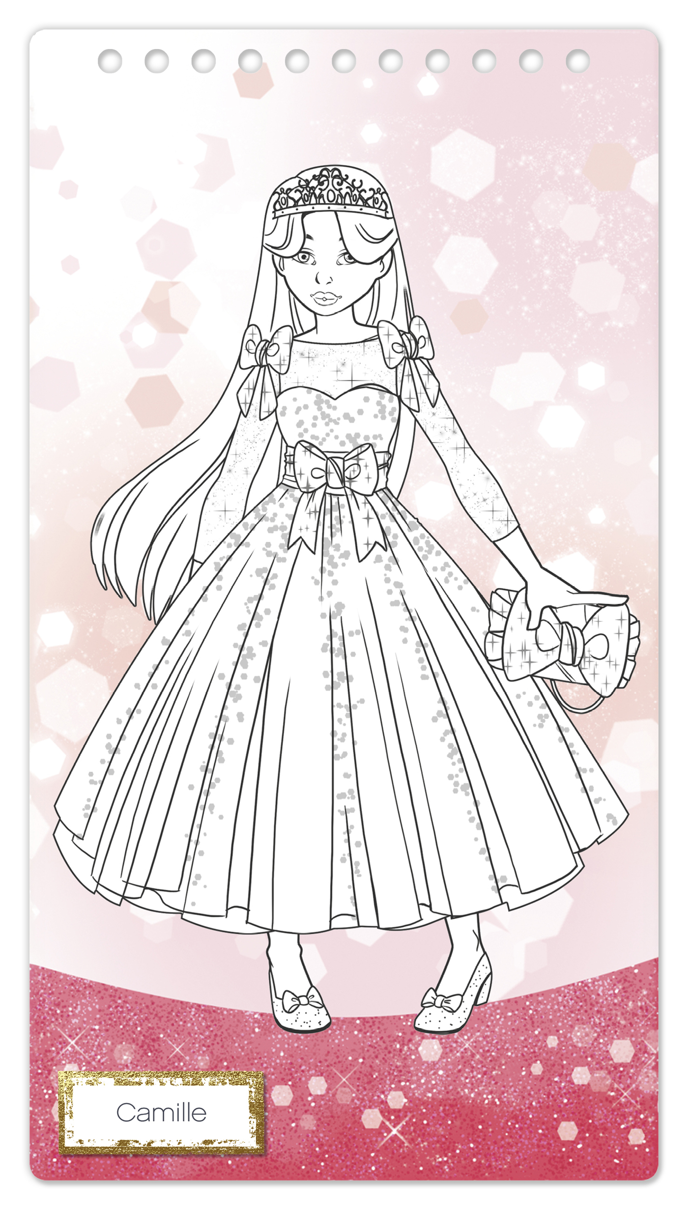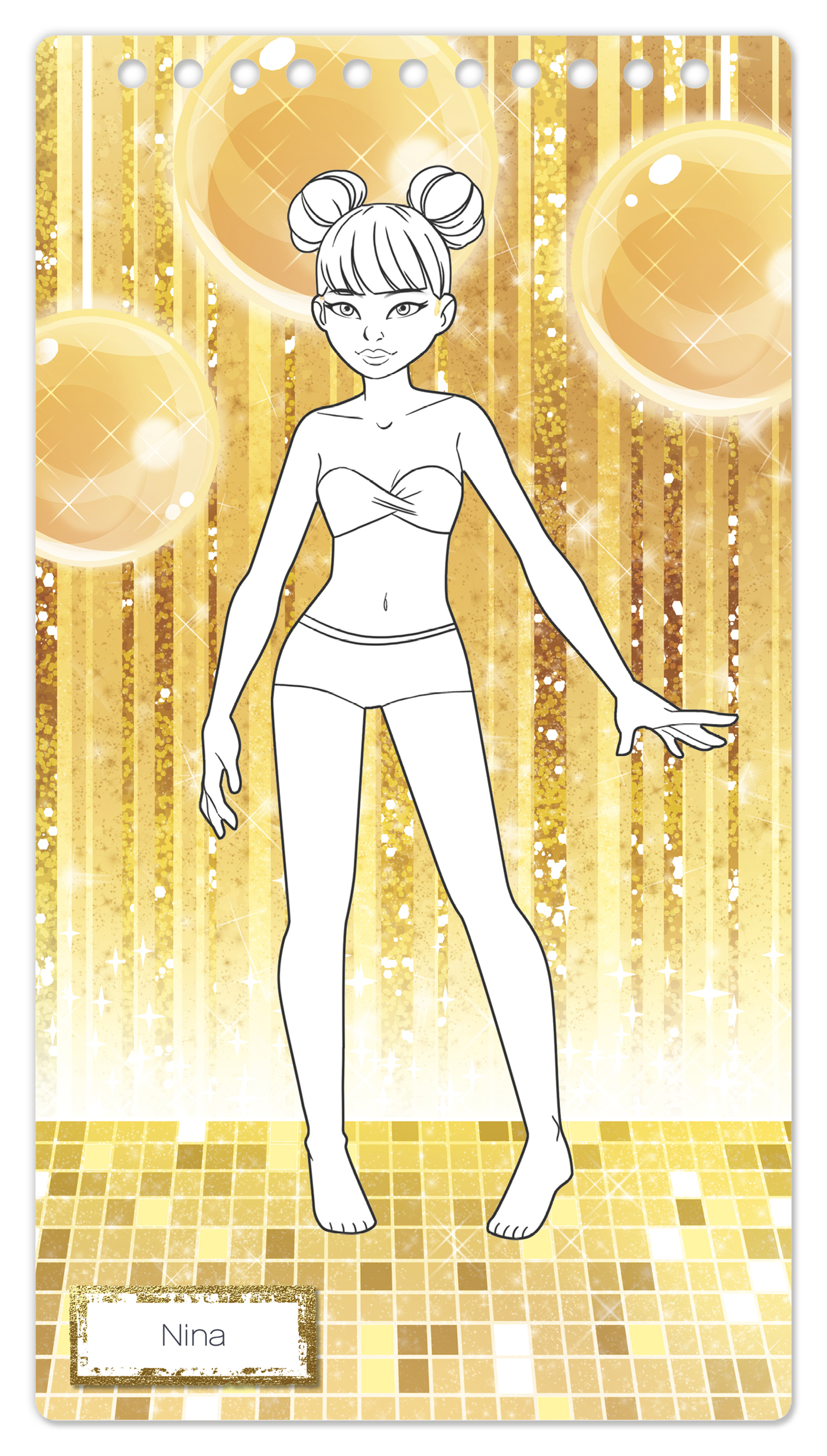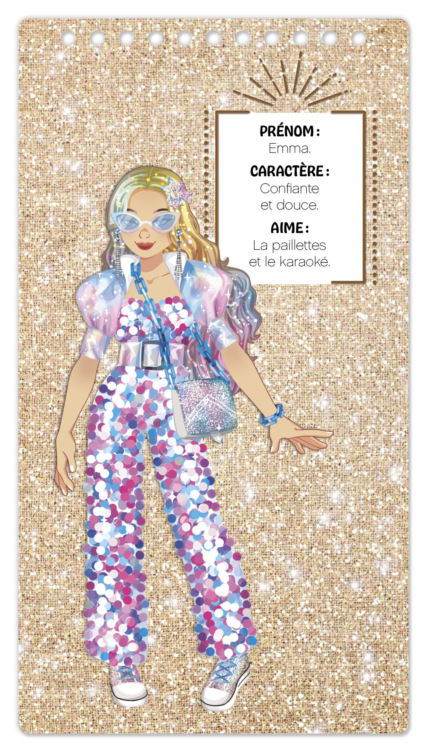 Ce cahier contient 54 silhouettes de poupées à personnaliser avec 180 stickers de tenues et accessoires scintillants, ainsi que des vêtements à colorier et à découper pour encore plus de créativité.