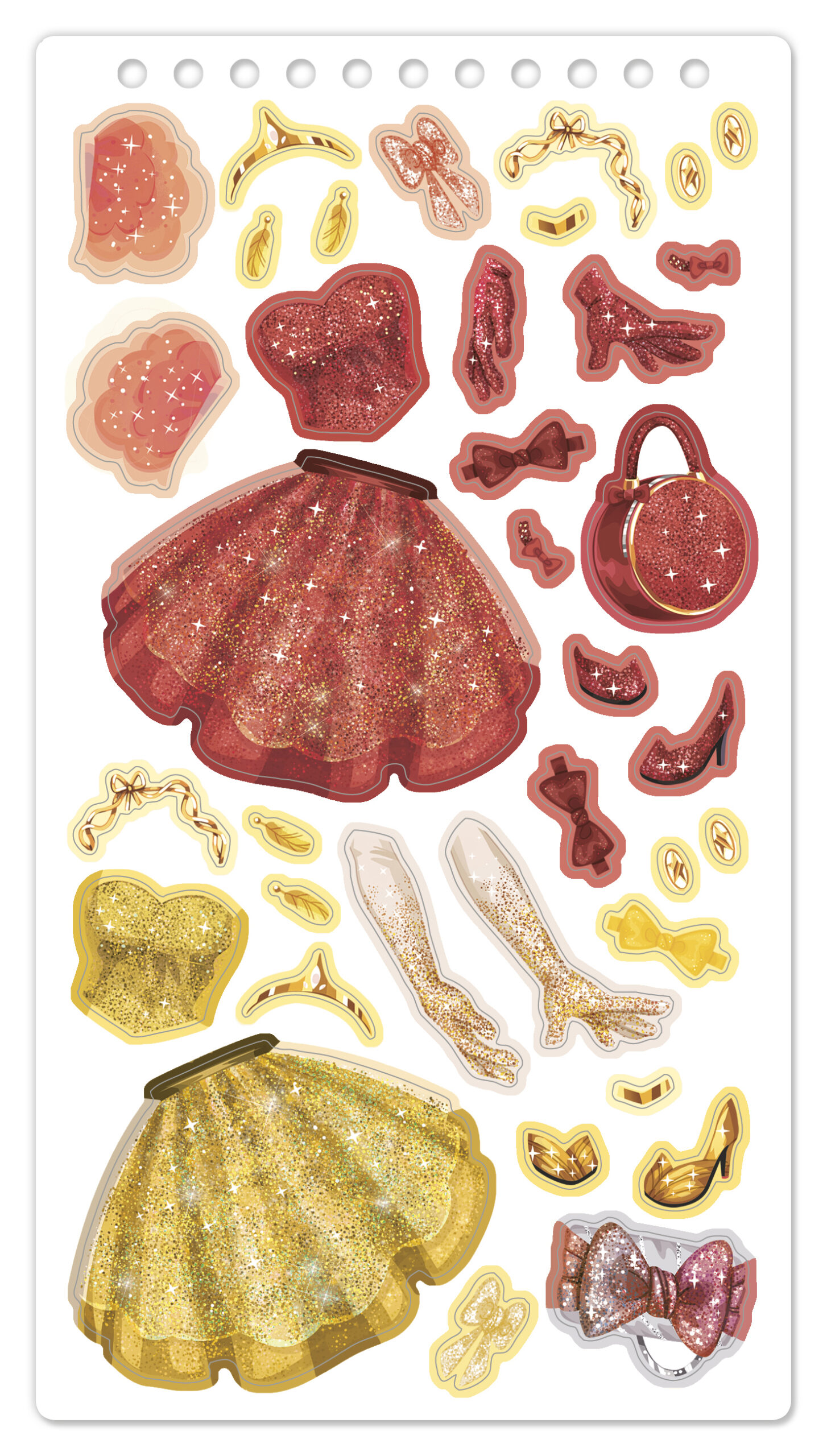 • Inclus : 180 stickers de vêtements et accessoires brillants, + tenues à colorier et à découper
