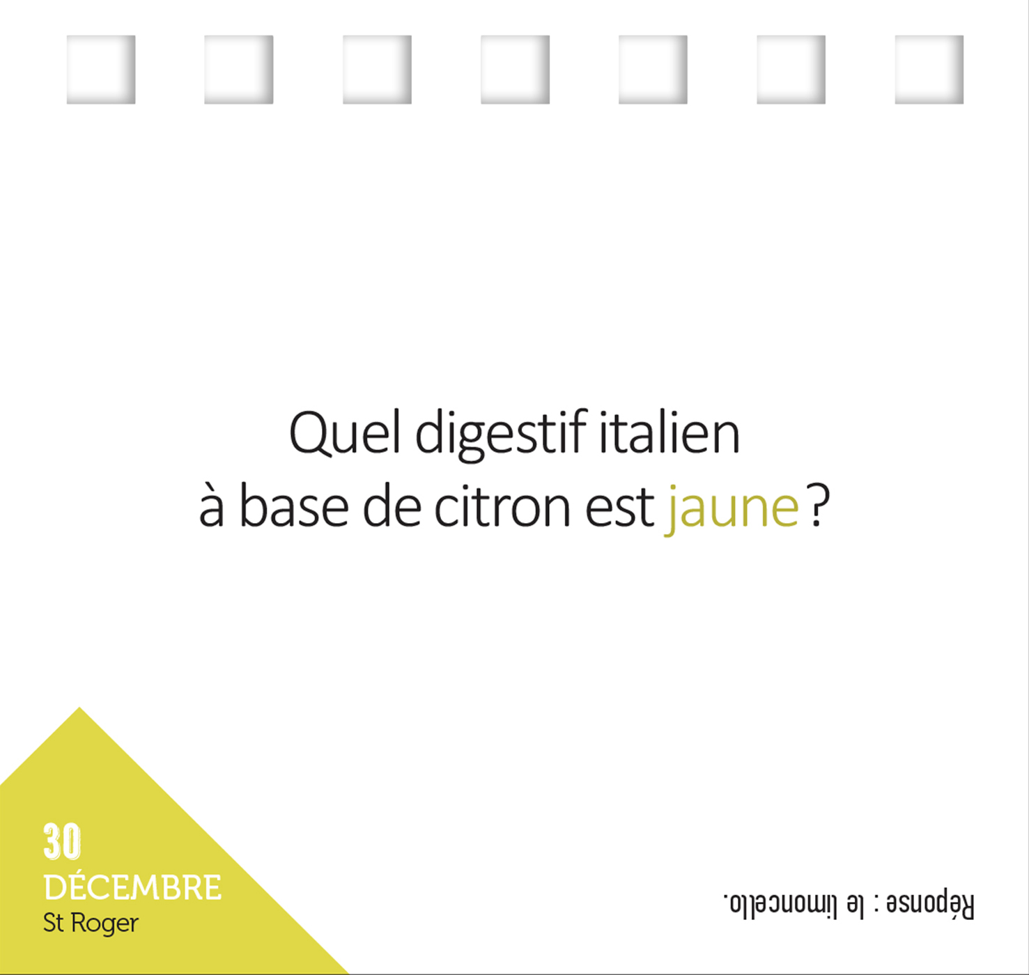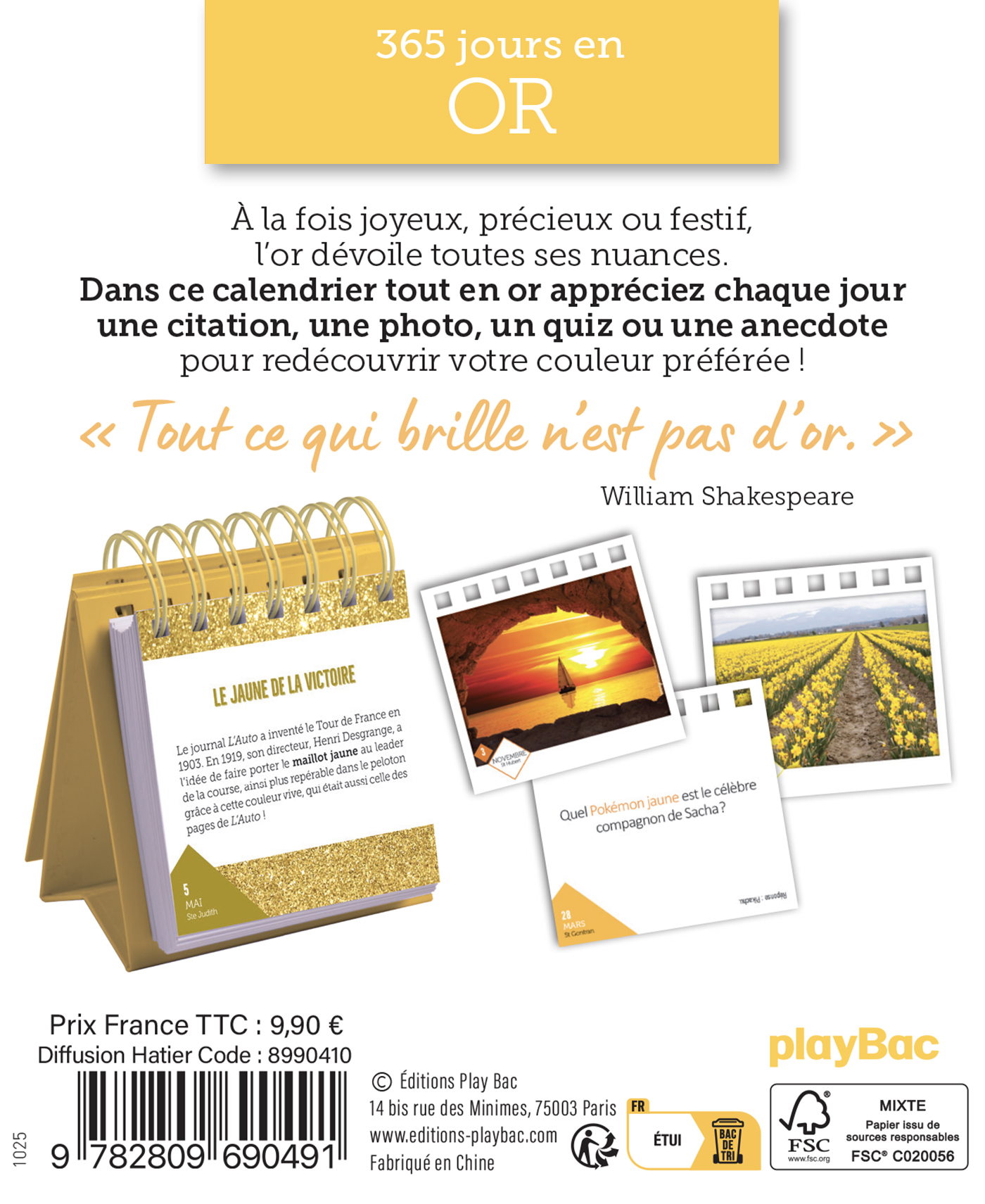 Dans ce calendrier tout en or, appréciez chaque jour une citation, une photo, un quiz ou une anecdote pour redécouvrir votre couleur préférée !