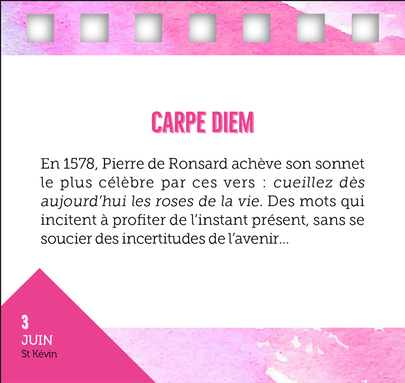 Dans ce calendrier tout en rose, appréciez chaque jour une citation, une photo, un quiz ou une anecdote pour redécouvrir votre couleur préférée !
