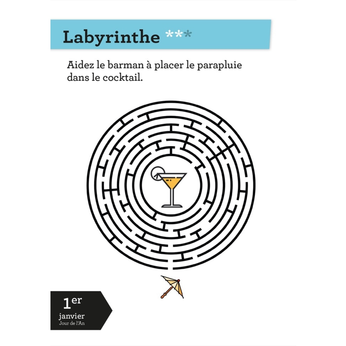 Chaque jour, retrouvez une activité pour faire travailler vos neurones : labyrinthe, cible, roulette, pyramide, message codé, suite logique, cryptogramme… 365 défis pour remuer ses méninges toute l'année et devenir un as des énigmes !