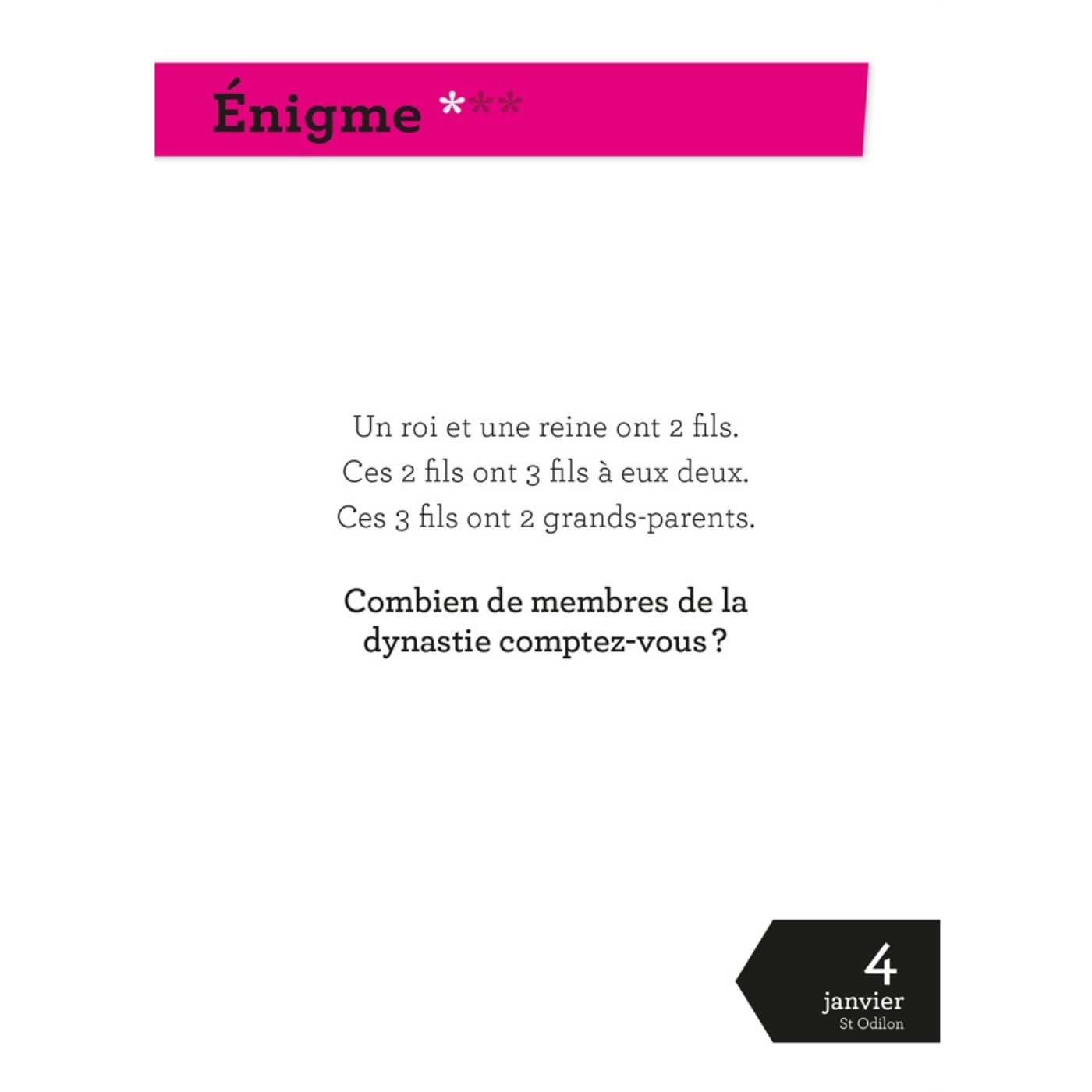 Le calendrier des fans d'énigmes.
