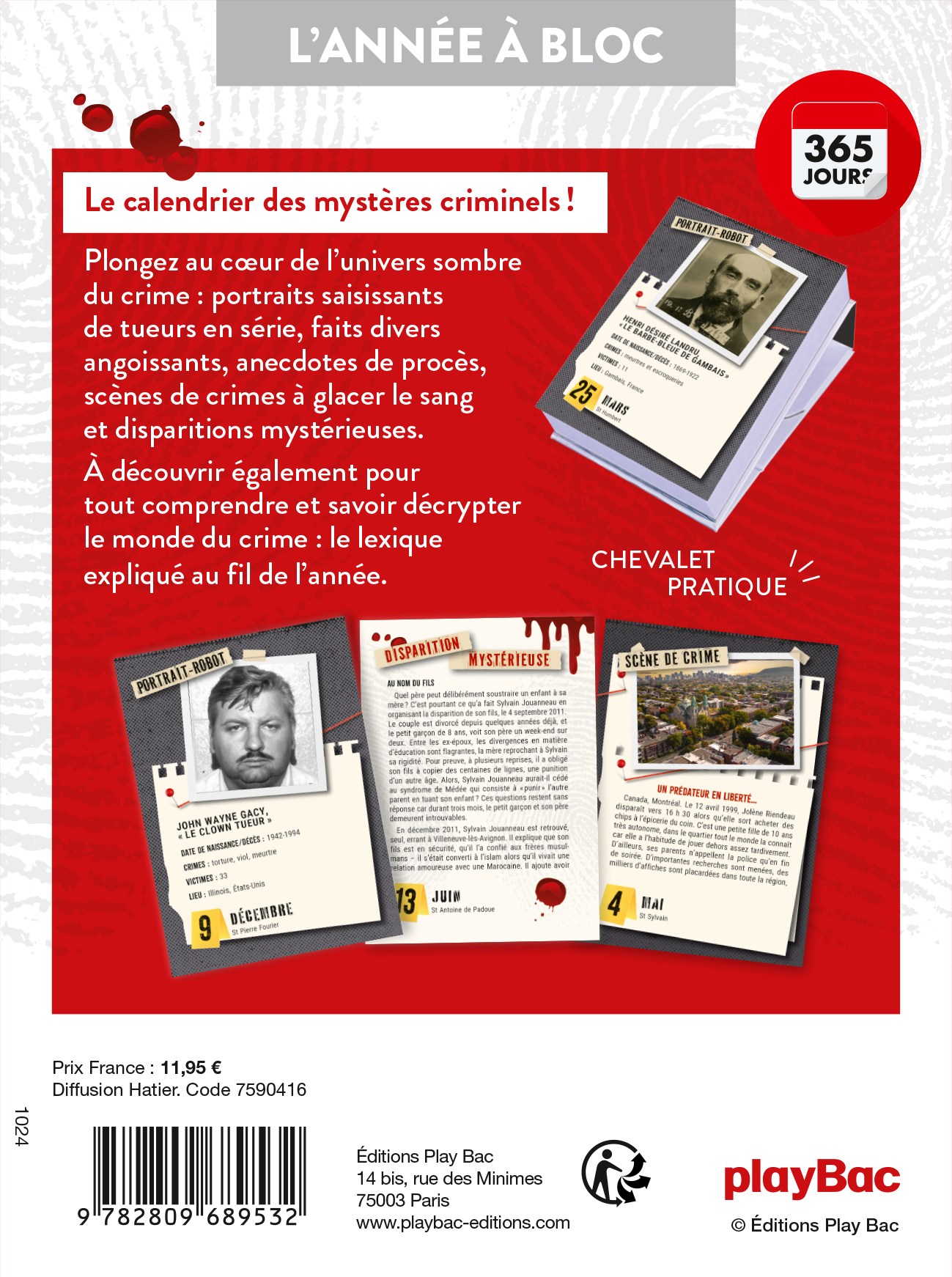 Pour trouver une librairie où acheter Calendrier Crimes et Faits divers en 365 jours – L’ANNÉE À BLOC, on vous invite à visiter le site Place des libraires !Place des Libraires
