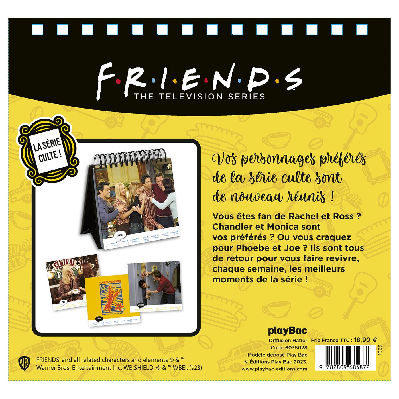 Vous êtes fan de Rachel et Ross ? Chandler et Monica sont vos préférés ? Ou vous craquez pour Phoebe et Joe ? Ils sont tous de retour pour vous faire revivre, chaque semaine, les meilleurs moments de la série dans ce calendrier photos 2024 à poser sur son bureau grâce à son chevalet !