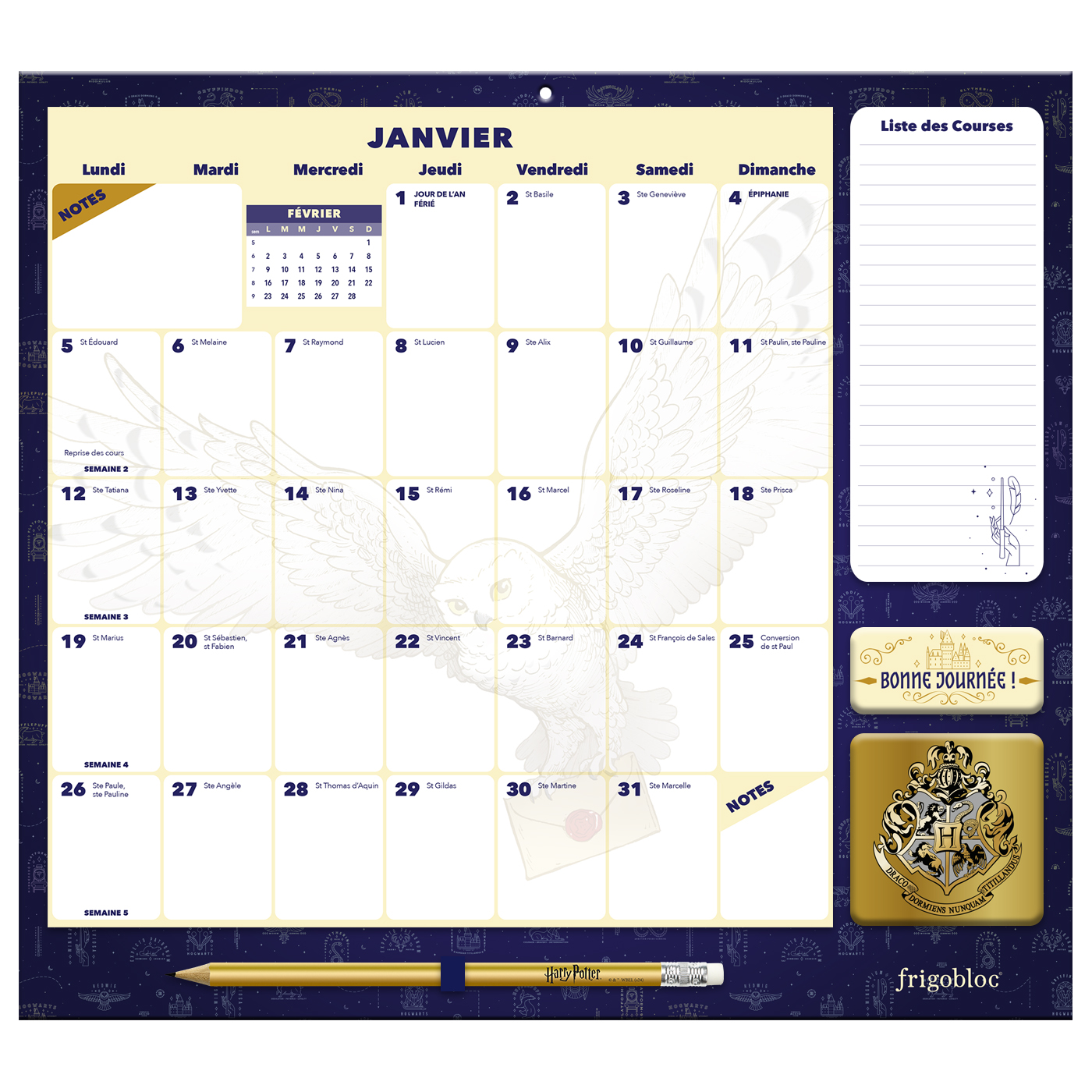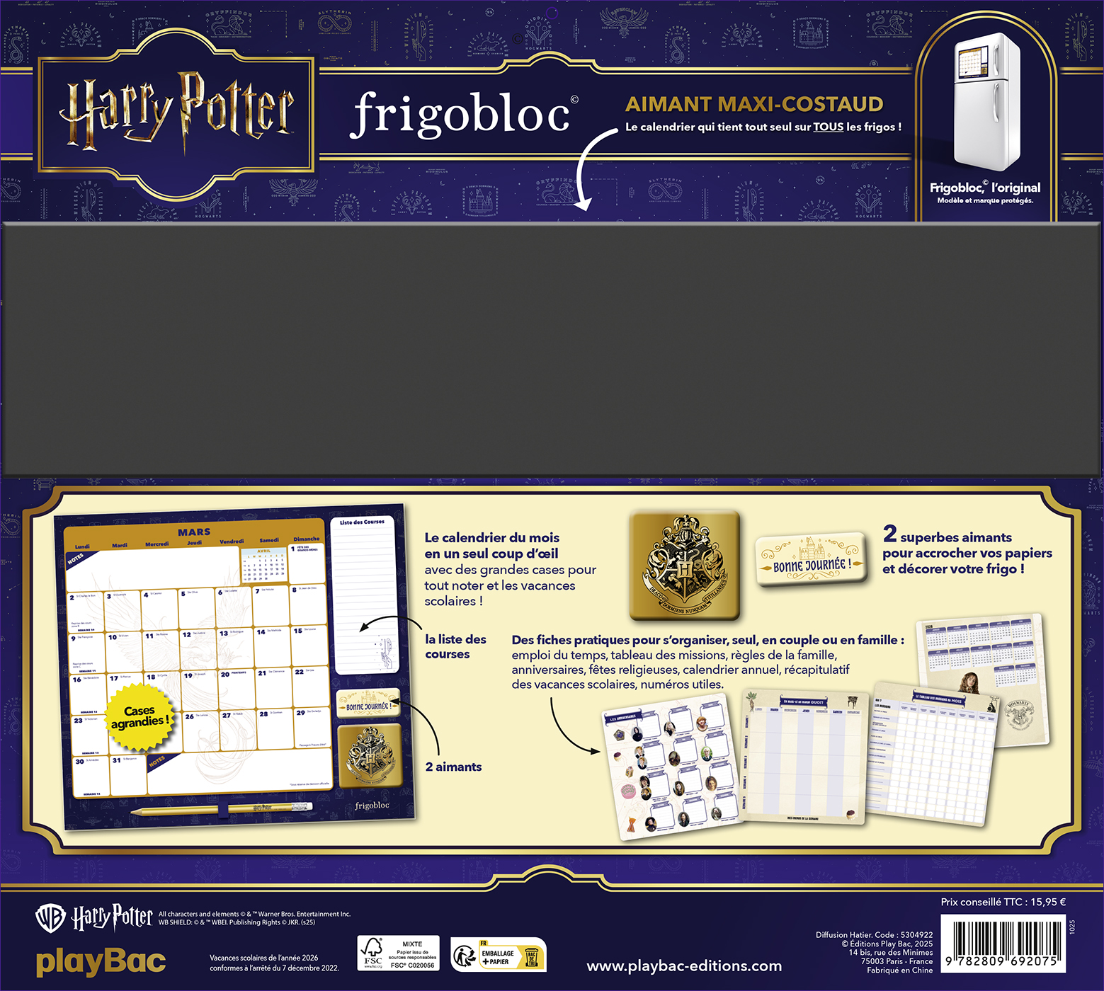 Grâce à ce calendrier maxi aimanté qui tient parfaitement sur tous les frigos, planifiez tout de janvier à décembre 2026 en apportant une touche « Harry Potter » à votre intérieur. Le planning d’organisation par mois, solide et disposant de grandes cases, permet de tout noter et de ne rien rater de la vie familiale.