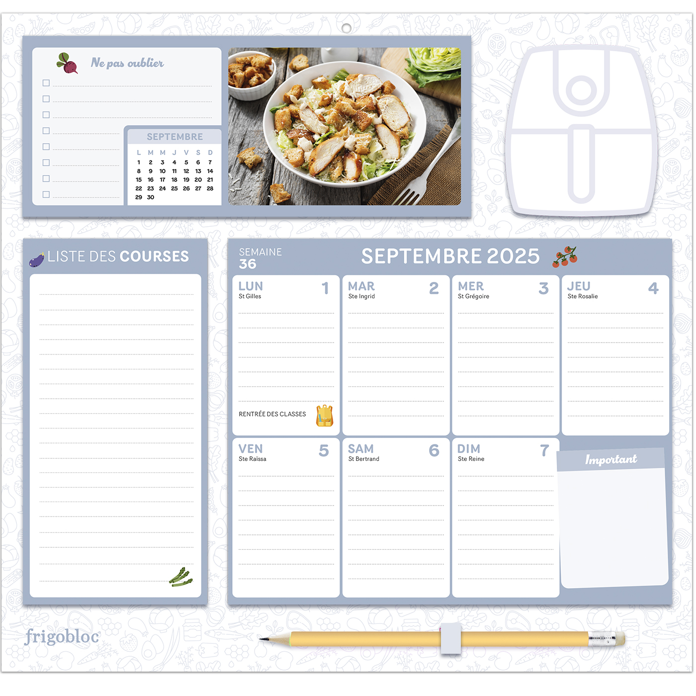 Planifiez votre vie de famille de septembre 2025 à décembre 2026 (16 mois) et restez inspirés en cuisine avec ce calendrier spécial Air Fryer !