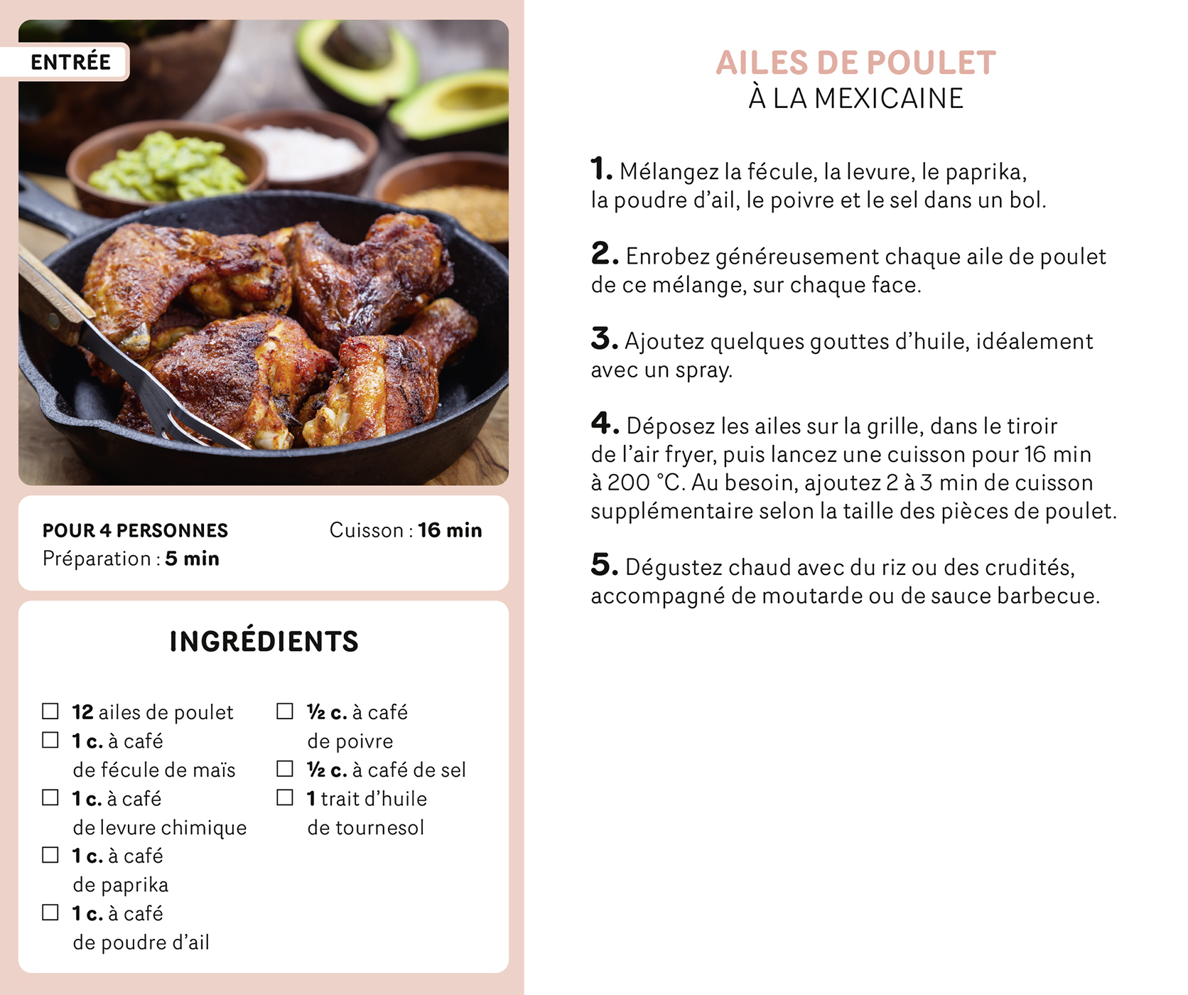 Au verso, 70 pages de recettes d'entrées, plats, desserts à réaliser à l'Air Fryer (recettes compatibles avec toutes les marques d'Air Fryer).
