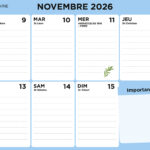 – 1 bloc calendrier du mois avec un espace notes et illustré d’une recette,