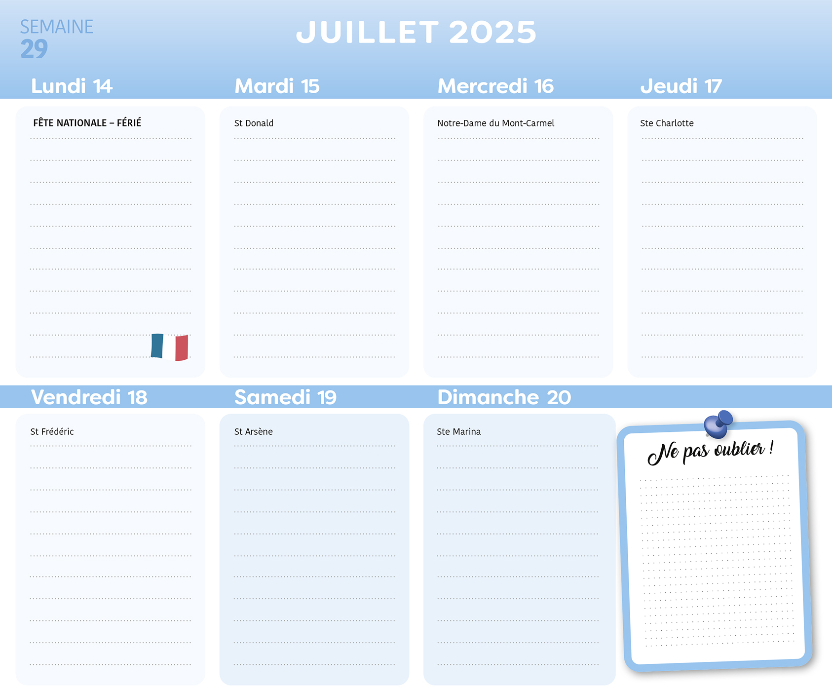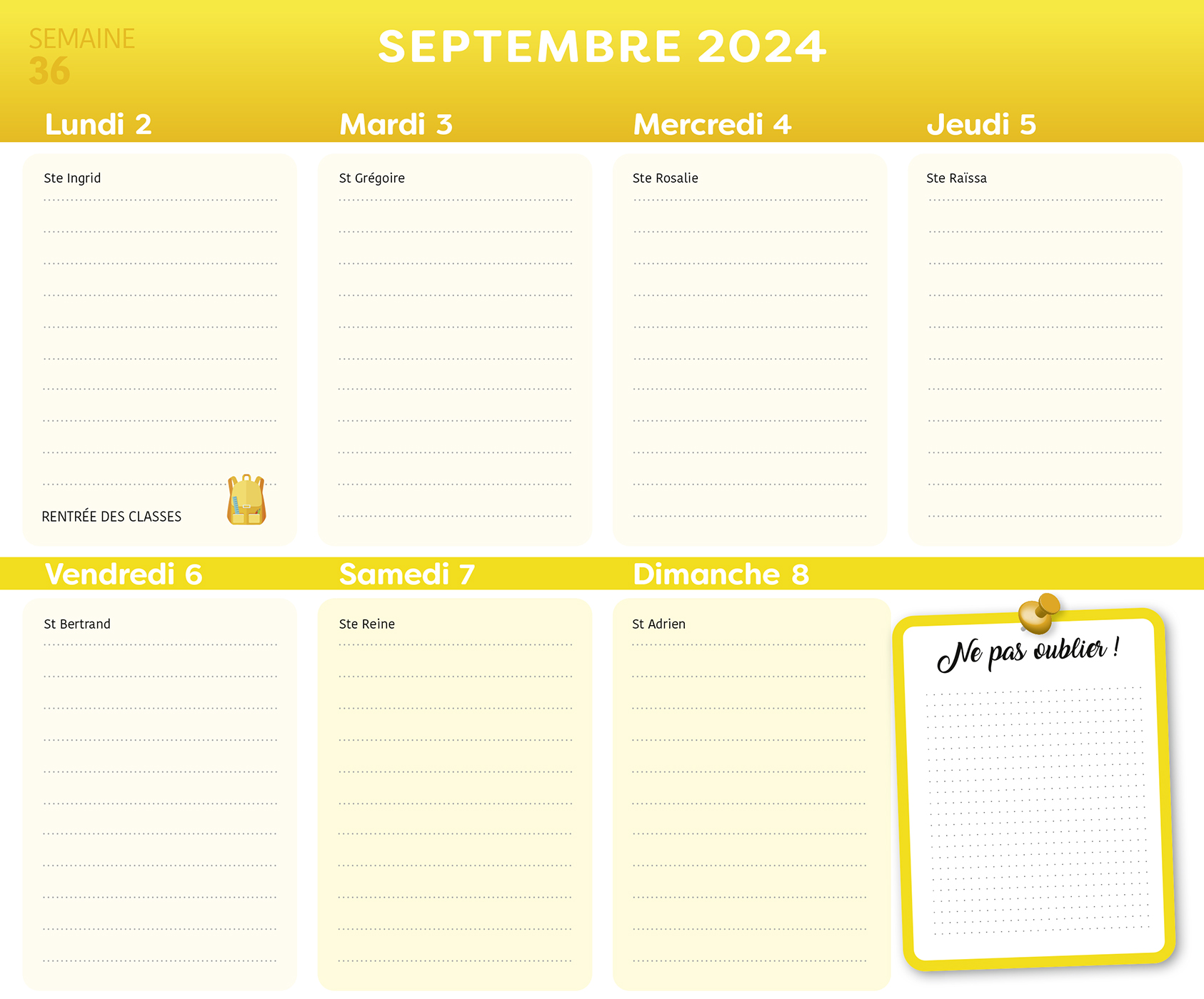 Grâce à ses grandes cases hyper pratiques, le planning d'organisation par semaine permet de tout noter et de ne rien rater de la vie familiale.