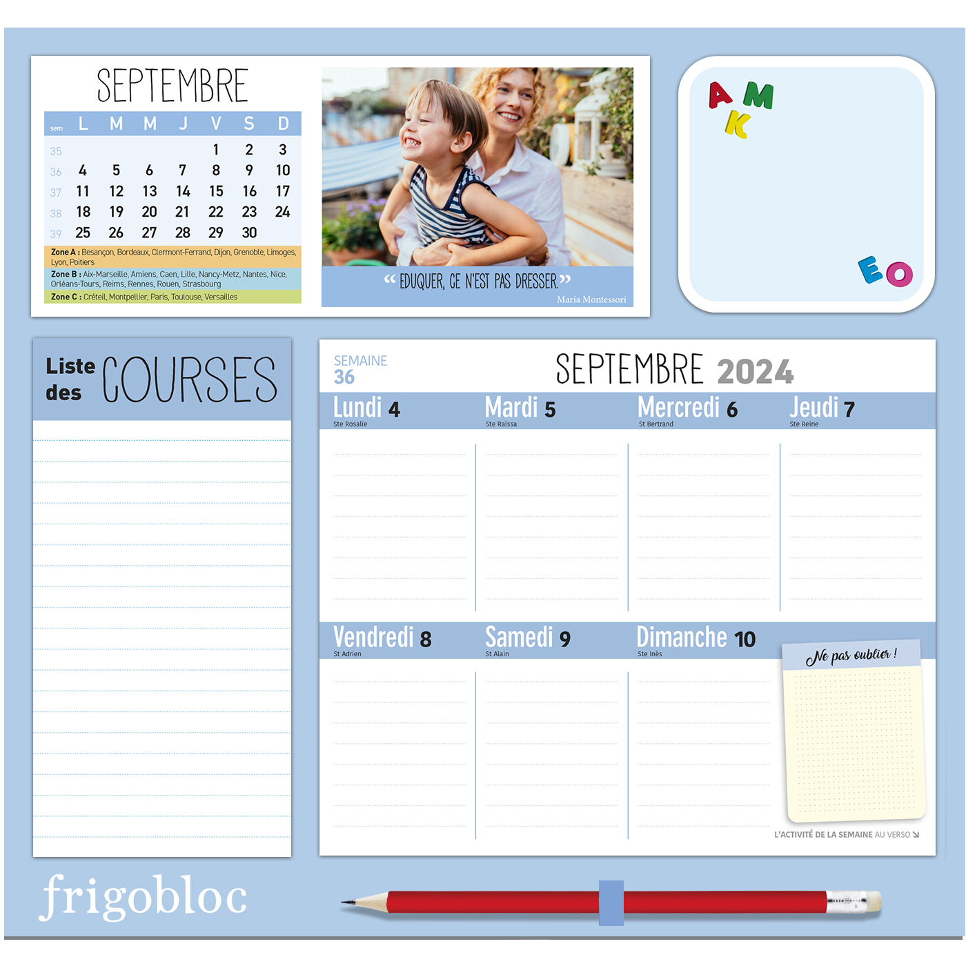 Frigobloc Hebdomadaire 2025 Montessori (de sept. 2024 à déc. 2025)