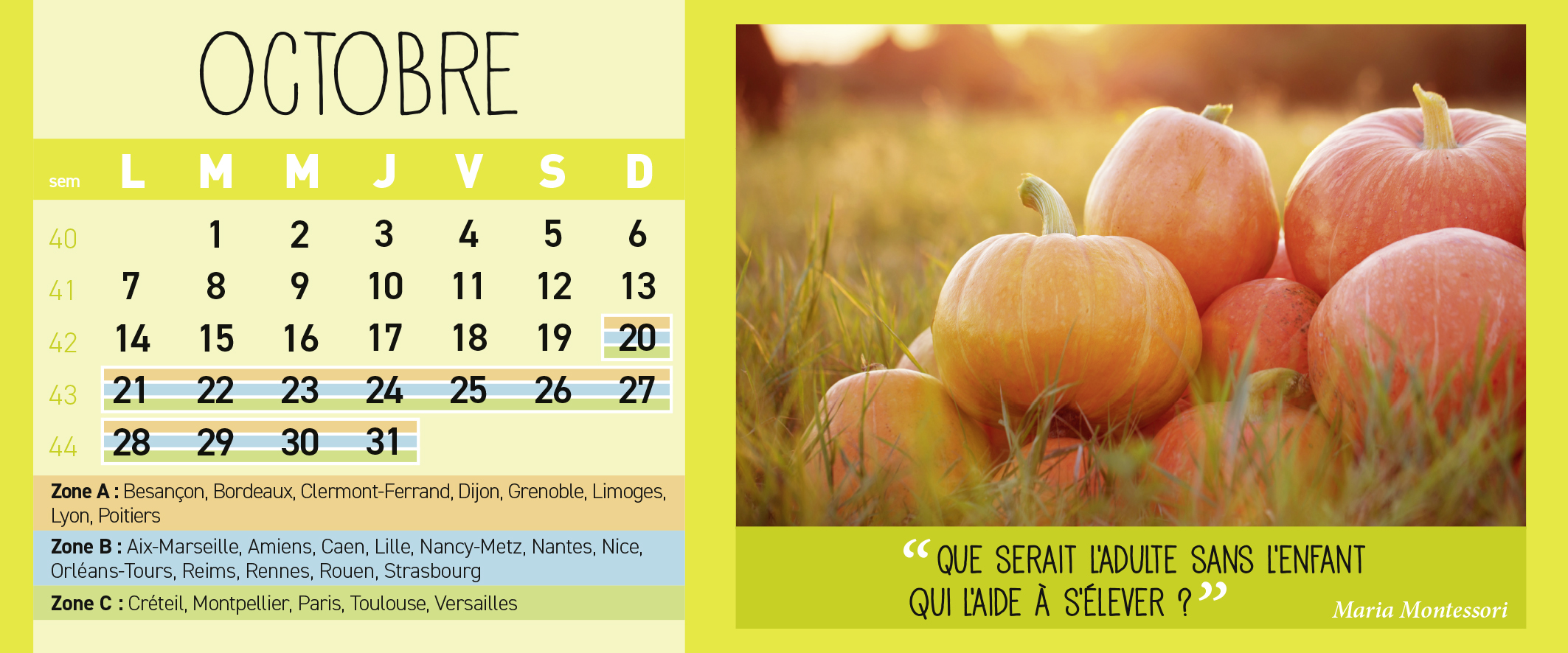 Avec les dates officielles des vacances scolaires !