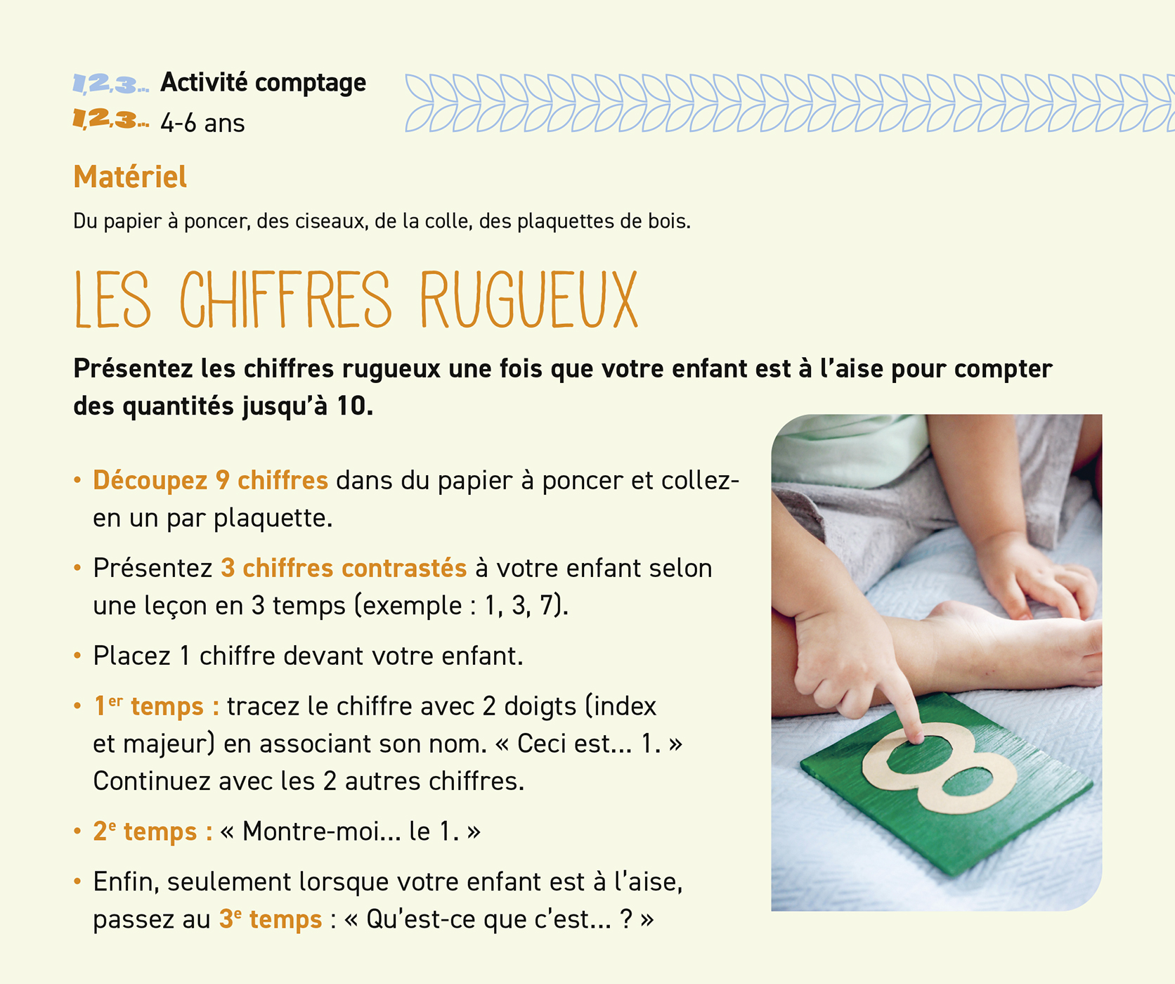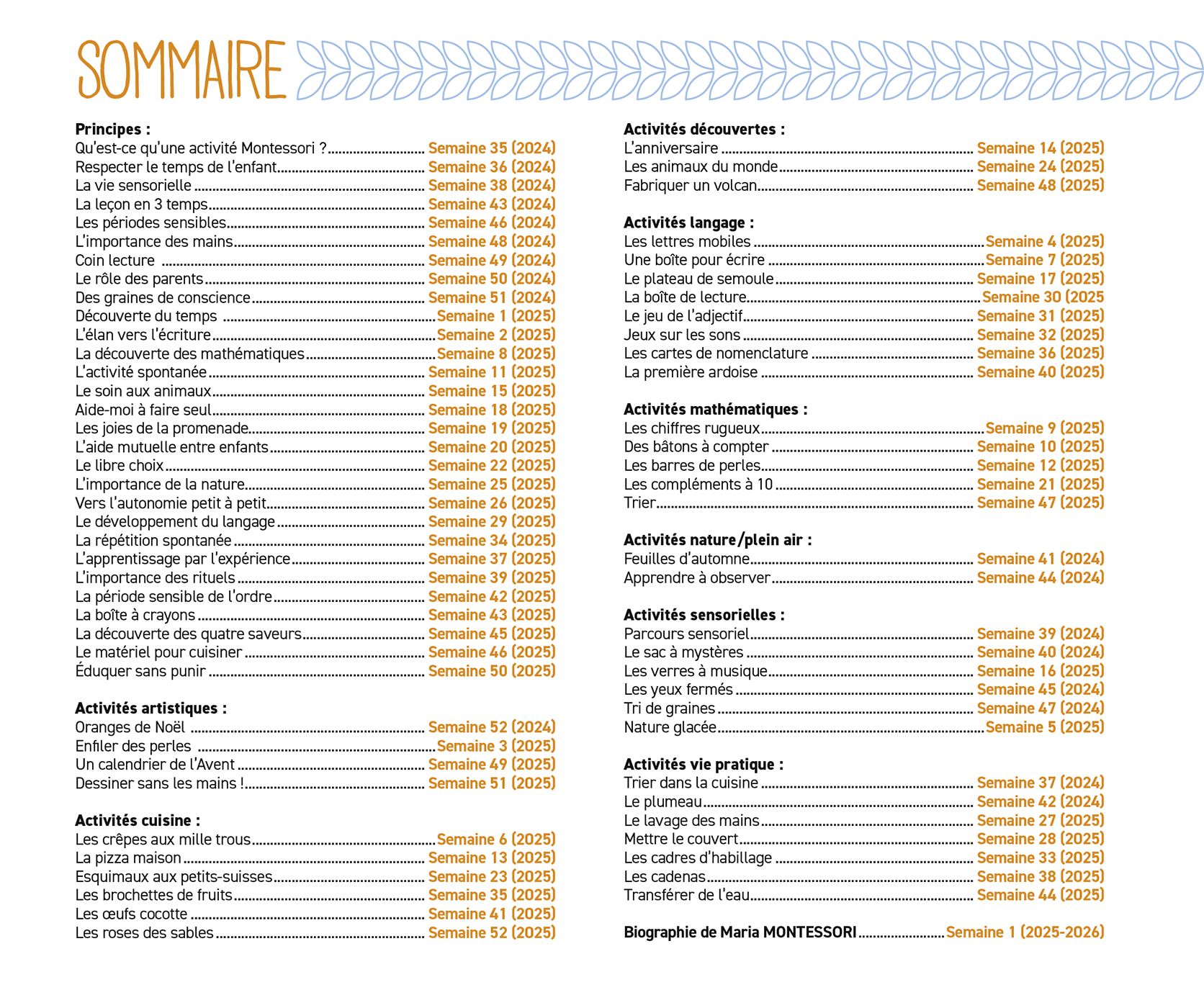 – 70 pages de principes éducatifs et de nombreux conseils de Maria Montessori, des activités d'intérieur et d'extérieur à faire en famille, des recettes que votre enfant peut réaliser seul…