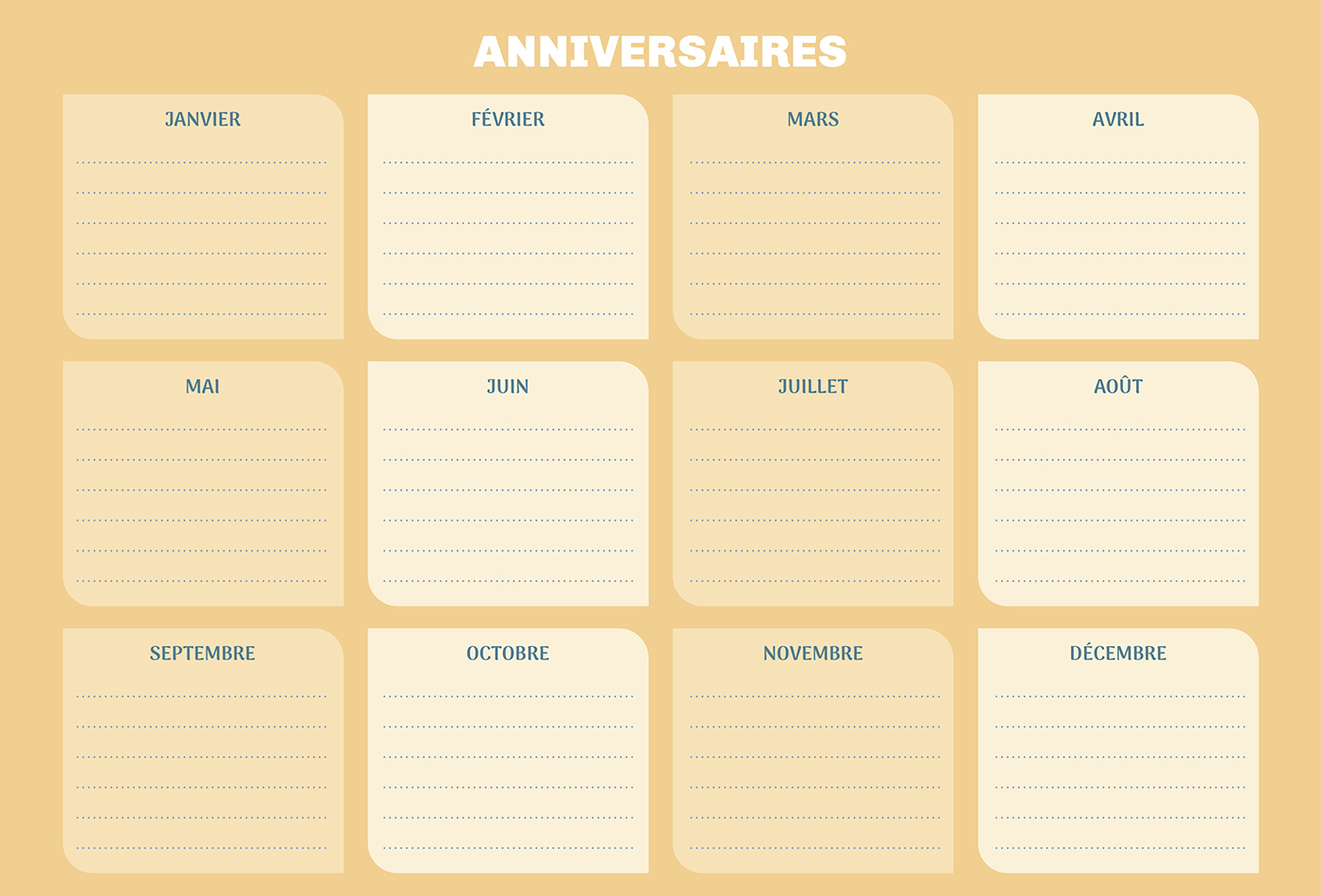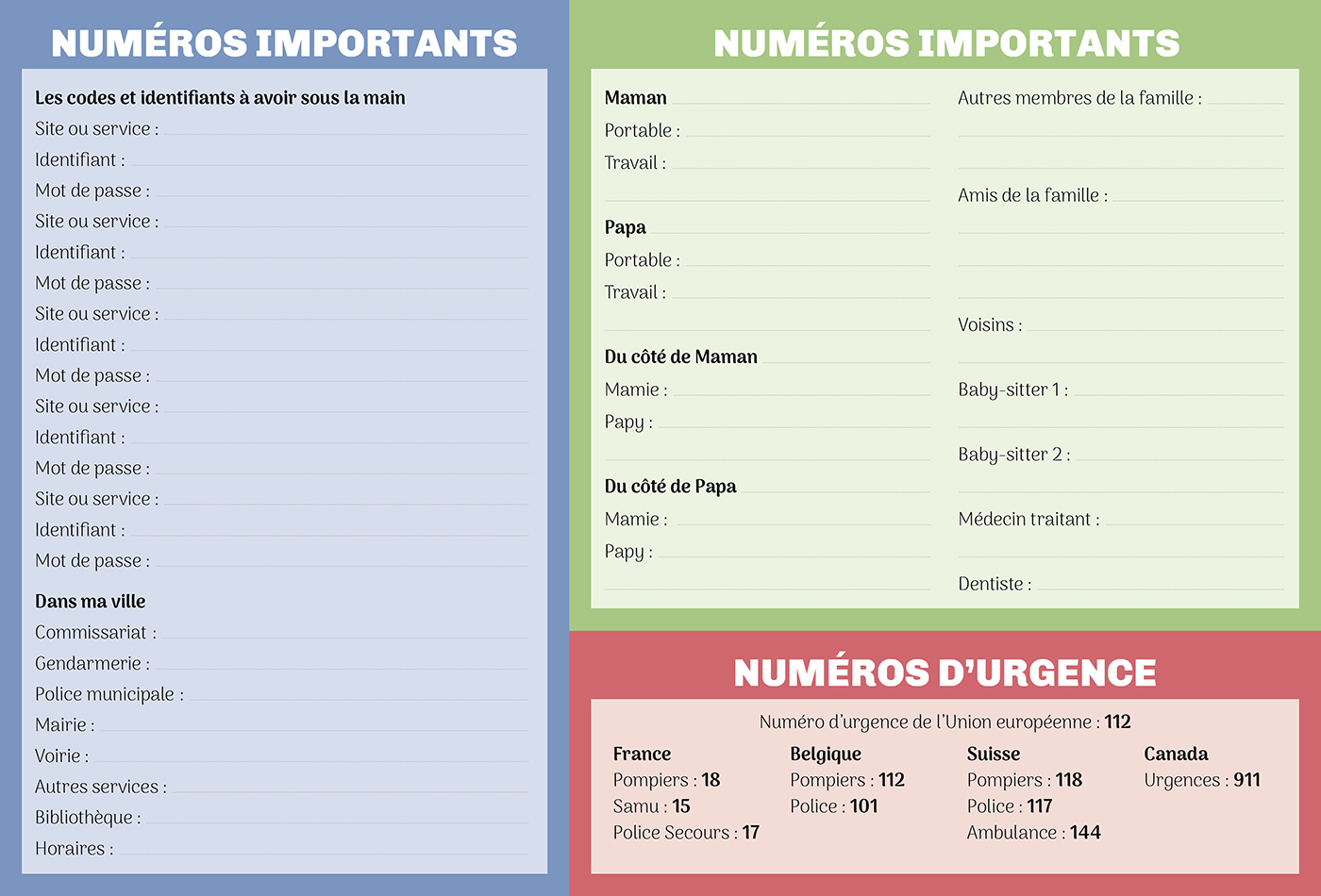 – Des fiches pratiques pour gérer le quotidien (emplois du temps, mémo anniversaires, numéros d’urgences…)