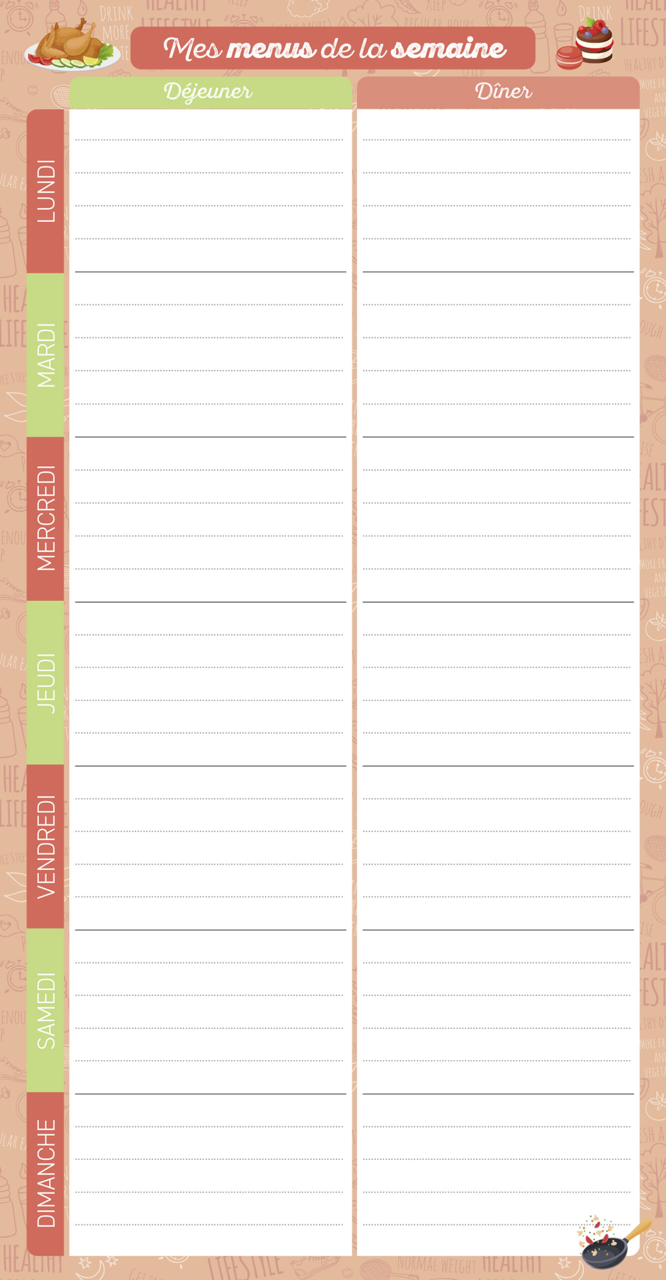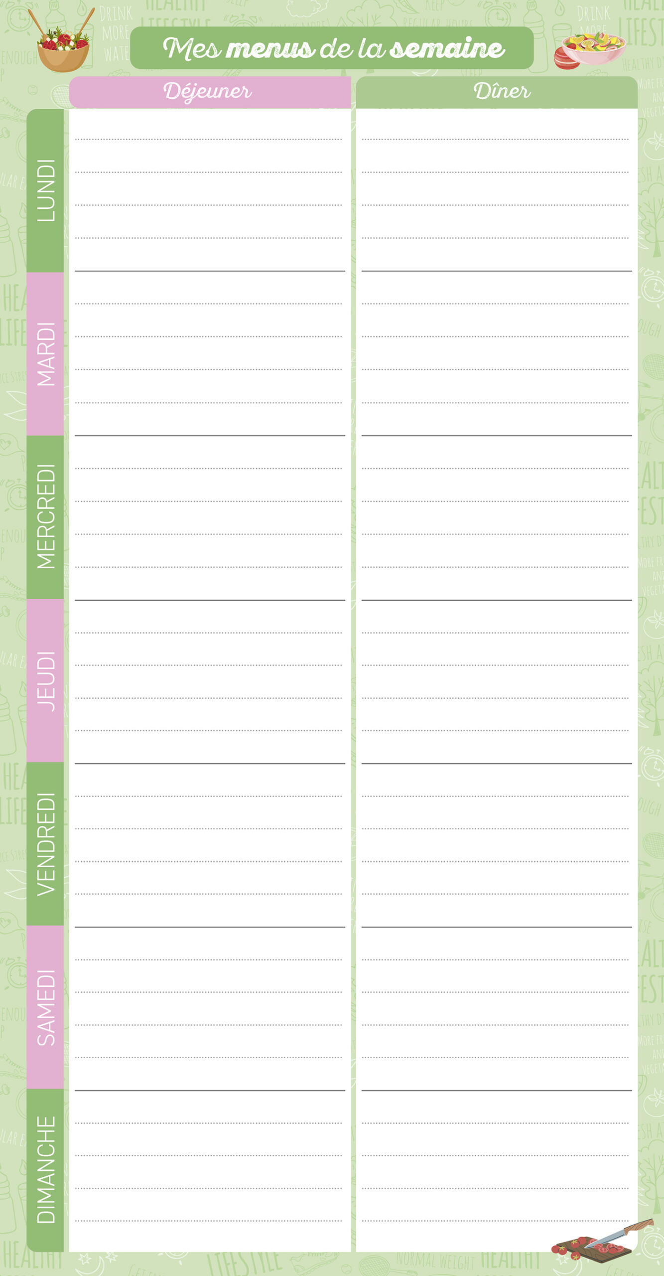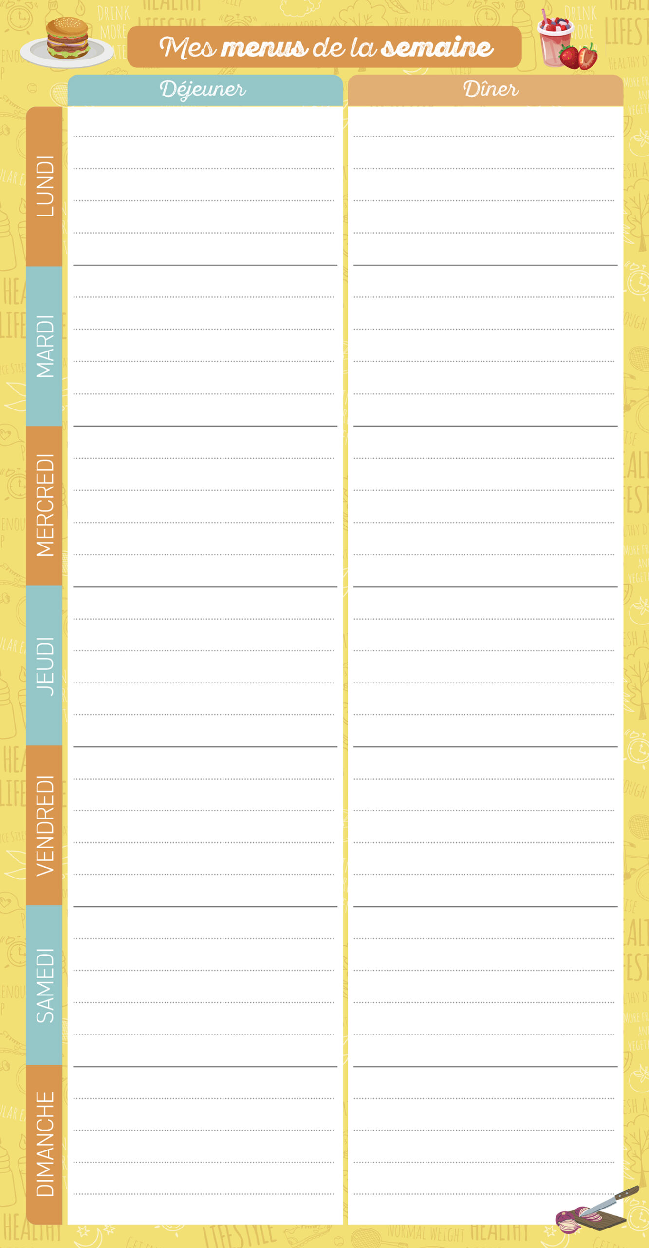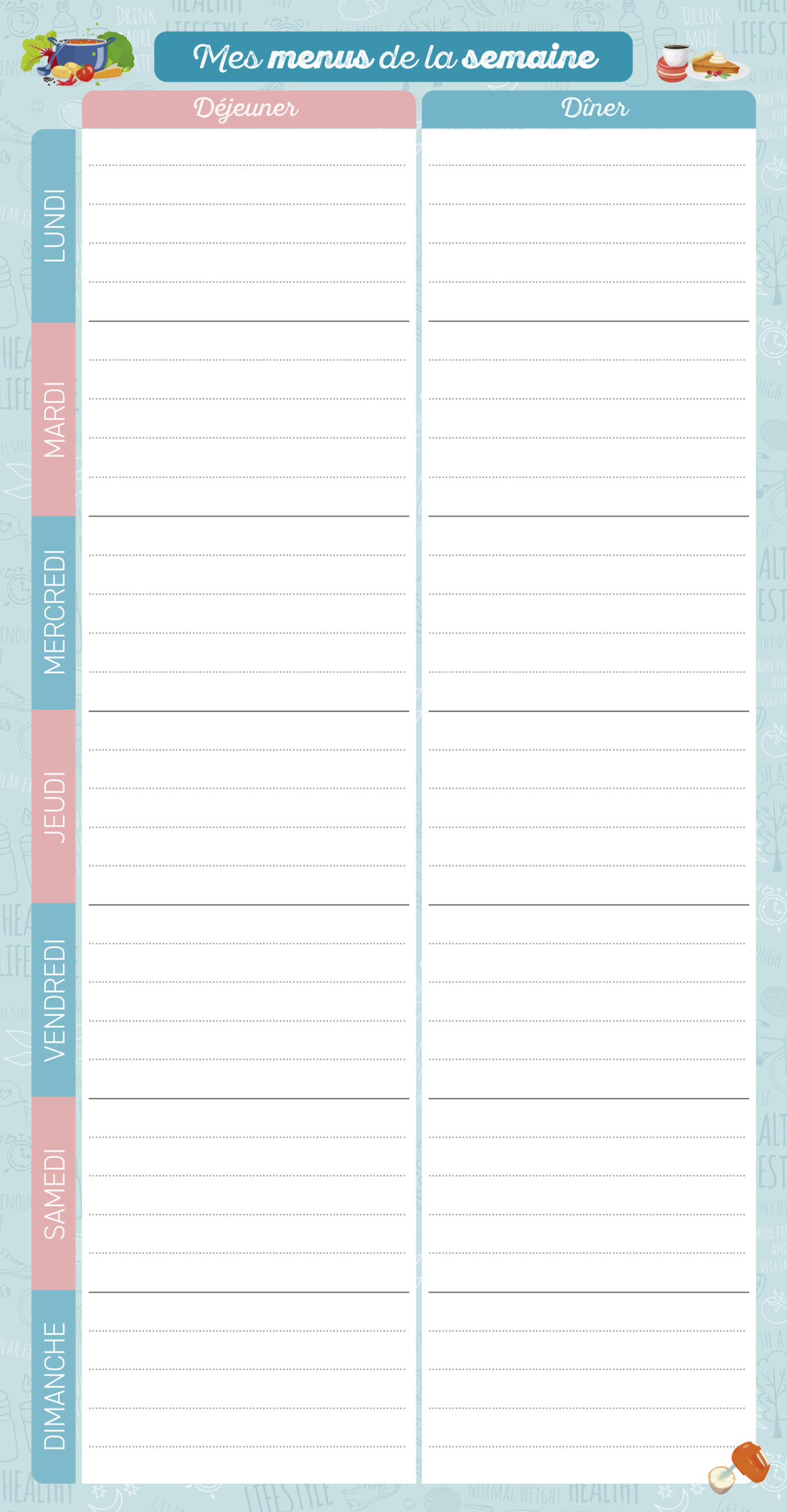 Pour toute l'année, un bloc maxi-aimanté de menus à remplir pour organiser les menus de la semaine !