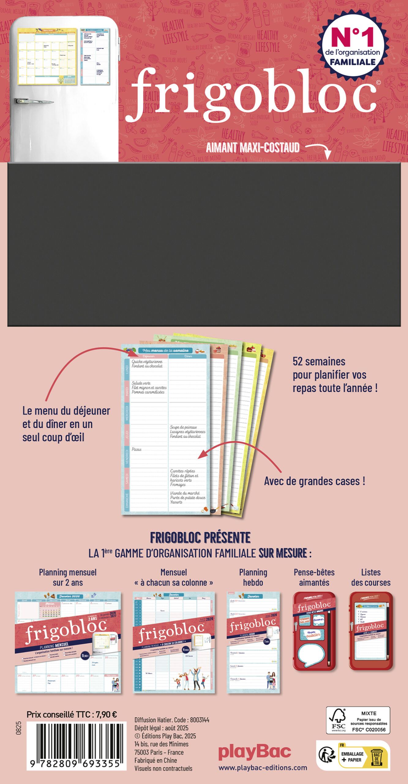 Complétez votre organisation avec d'autres produits de la gamme : un calendrier mensuel pour s'organiser chaque jour et chaque mois, des pense-bêtes aimantés pour ne rien oublier… FrigoBloc, l'organisation familiale qui VOUS ressemble !