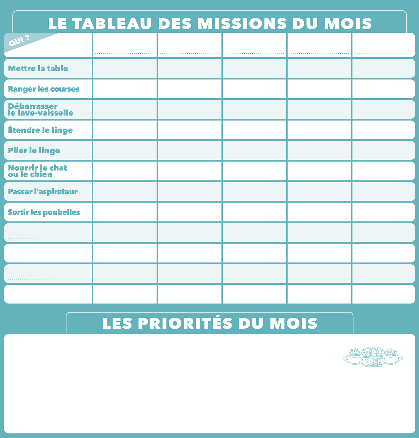 – Des fiches pratiques pour s’organiser seul ou en famille : numéros utiles, mémo anniversaire, priorités du mois, qui fait quoi, emploi du temps.