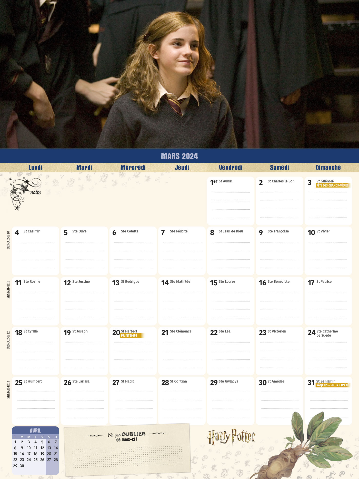 Frigobloc Mensuel 2024 Harry Potter (de sept. 2023 à déc. 2024)