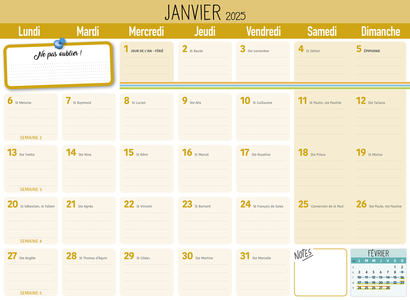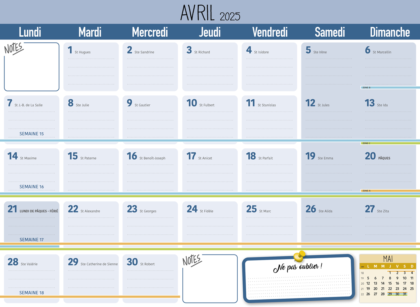 Planifiez tout sur 16 mois, de septembre 2024 à décembre 2025, avec ce calendrier maxi solide et mettez votre touche personnelle en y glissant vos photos préférées ! Le planning d'organisation par mois permet de tout noter et de ne rien rater de la vie familiale.
