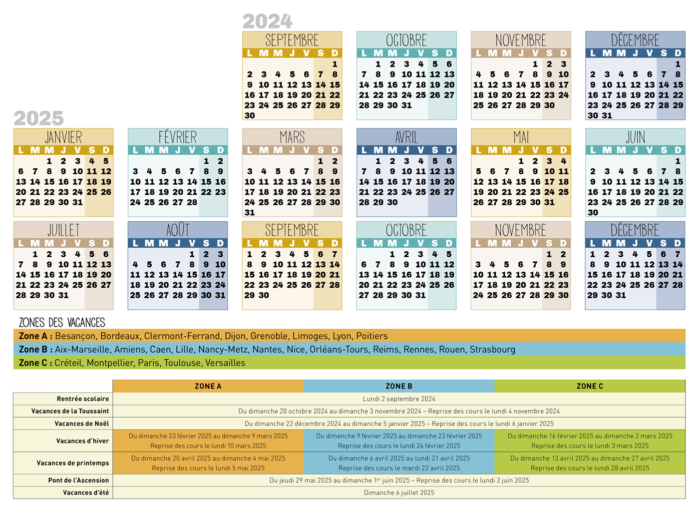 Avec les dates officielles des vacances scolaires !