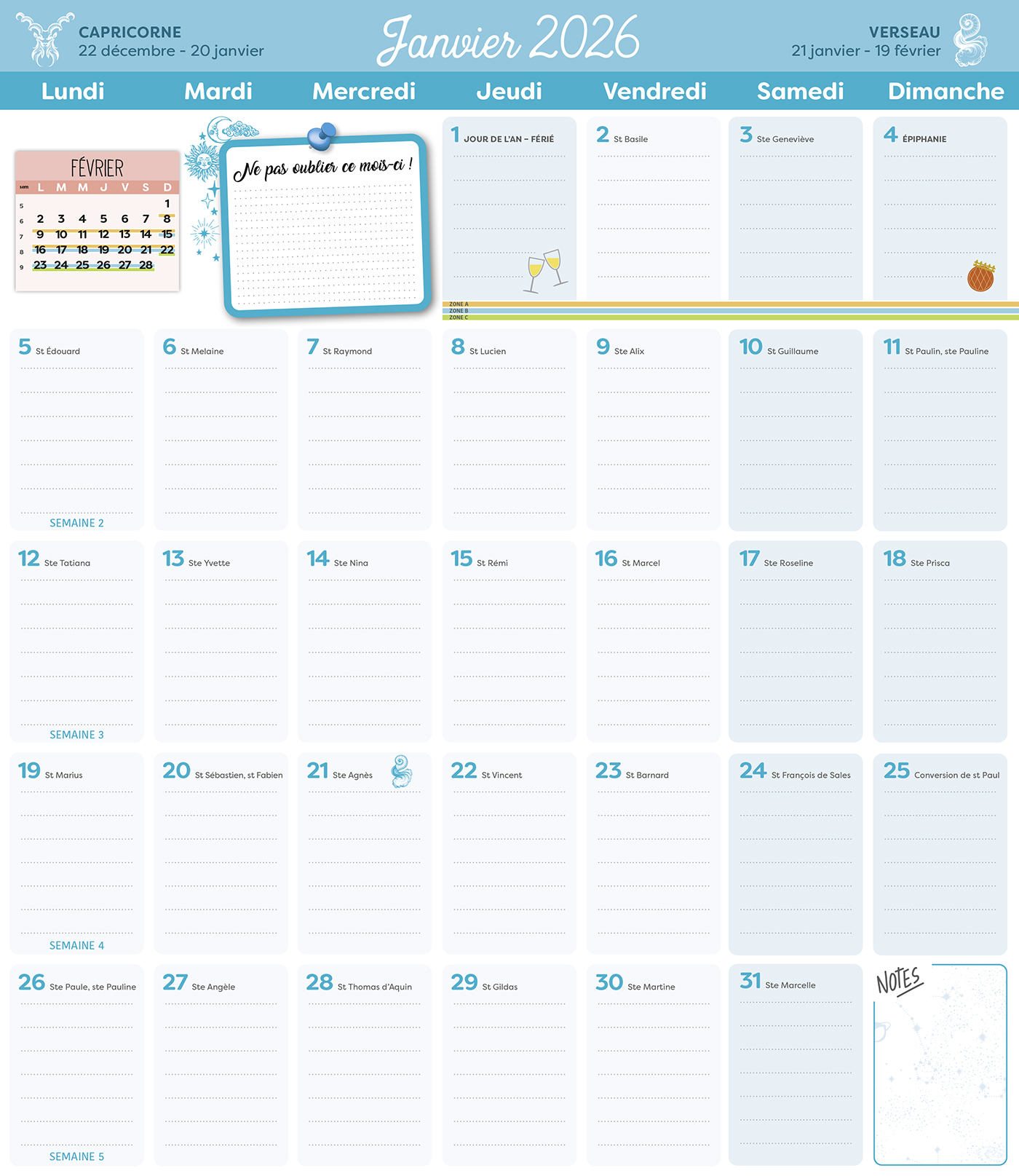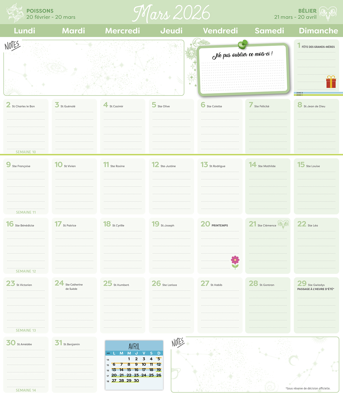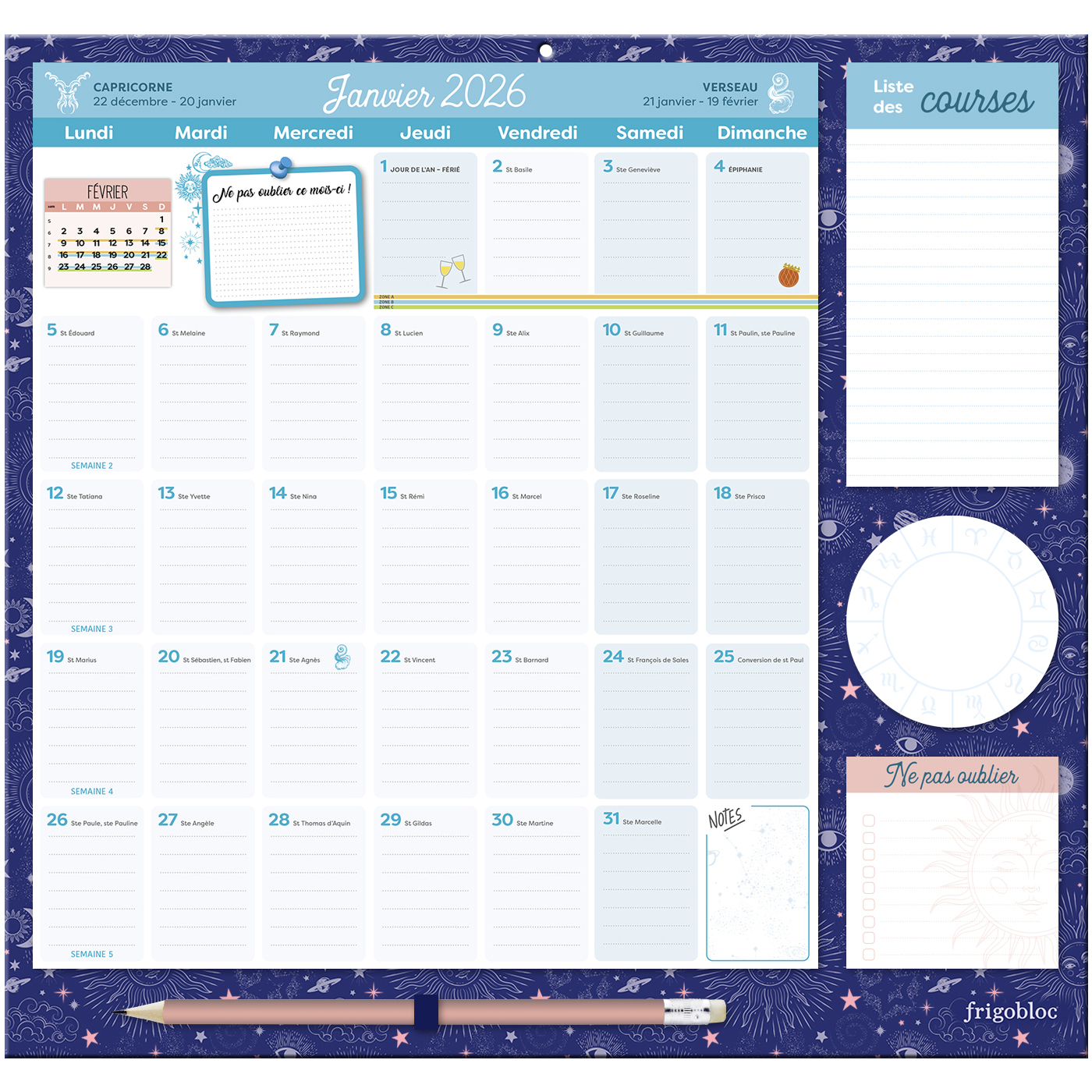 Grâce à ce calendrier Frigobloc Horoscope, qui tient parfaitement sur tous les modèles de frigos avec son maxi aimant, planifiez tout de janvier à décembre 2026 et découvrez chaque mois l'horoscope des 12 signes astrologiques.