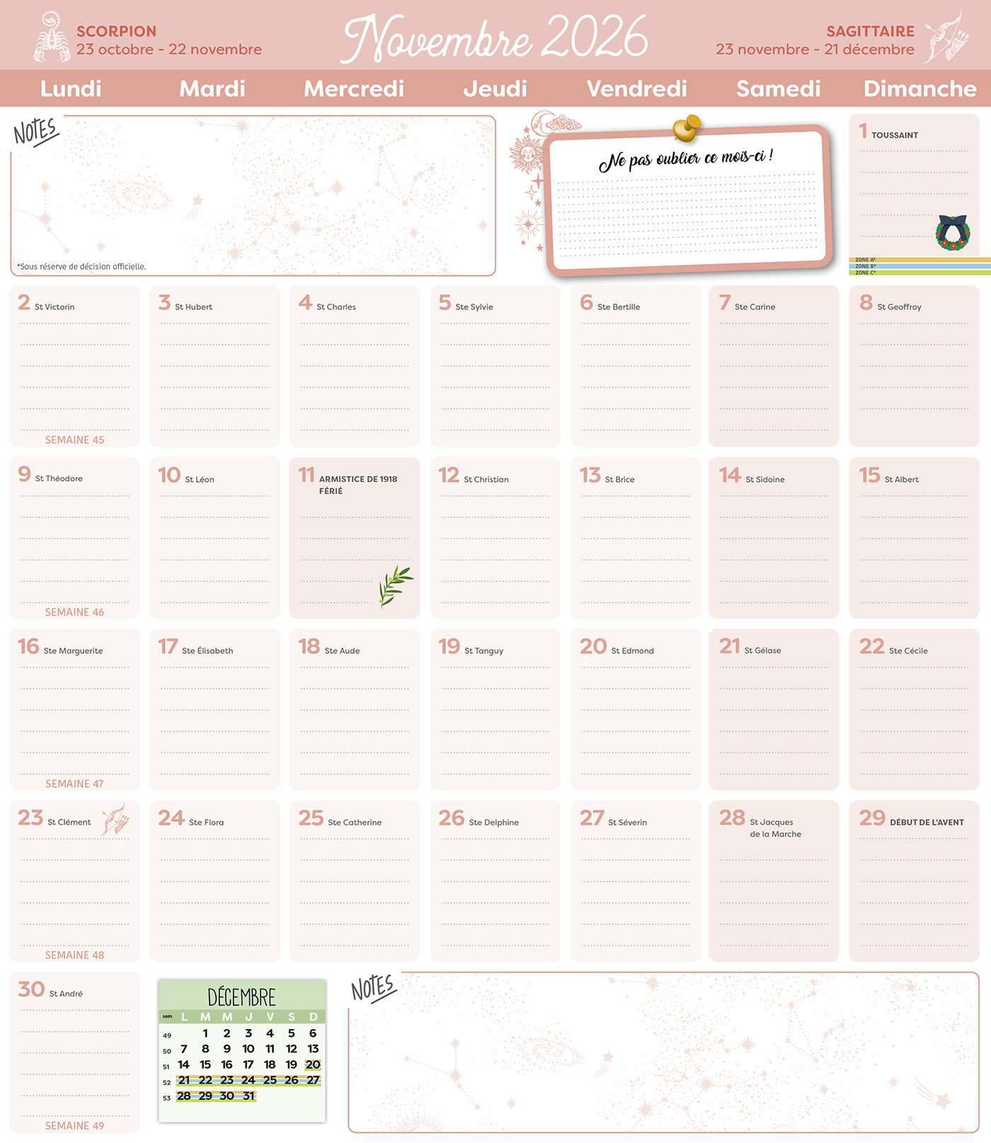 – Le calendrier de toute l'année