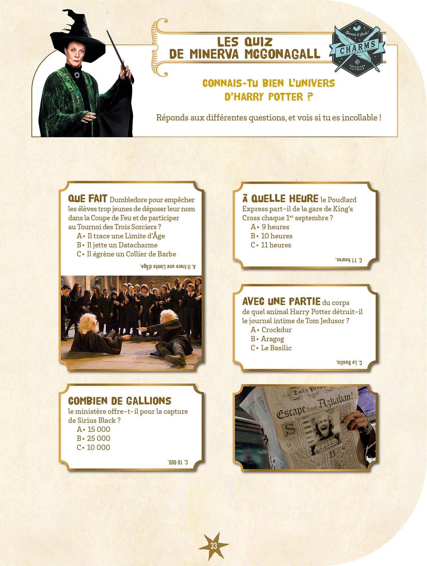 Des stickers, des coloriages, des cartes de tes personnages préférés, des cartes postales, des pages de dessin, des sorts à apprendre, des quiz et des objets en papier à créer, le tout dans un format à emmener partout avec toi.