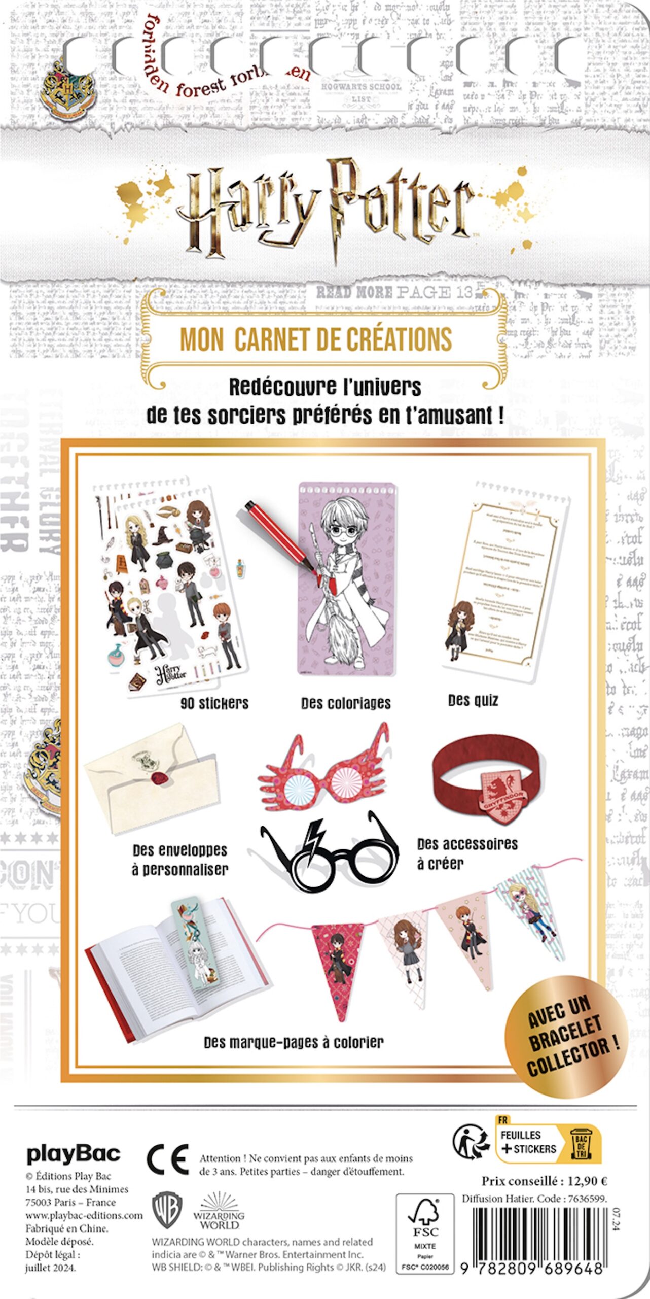 Un carnet créatif Harry Potter avec des activités pour t'amuser, réaliser de super créations 100% magiques et décorer ta chambre comme tu le souhaites aux couleurs de Poudlard, avec 4 pages de stickers !