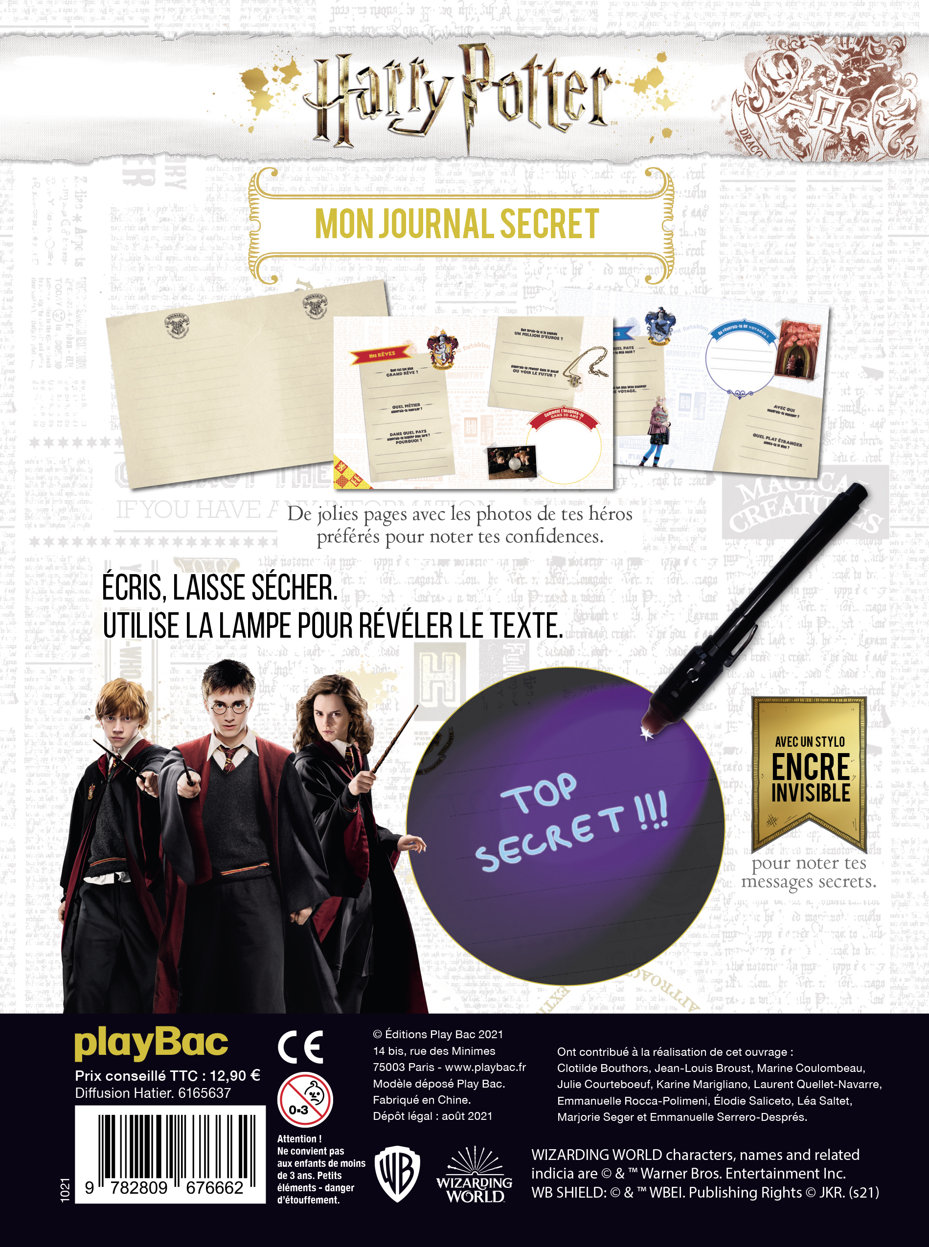 Dans ce journal intime aux couleurs d'Harry Potter, tes secrets seront bien gardés ! Grâce au stylo à encre invisible, écris tes messages secrets et tes confidences, laisse sécher et utilise la lampe pour révéler le texte. Magique !