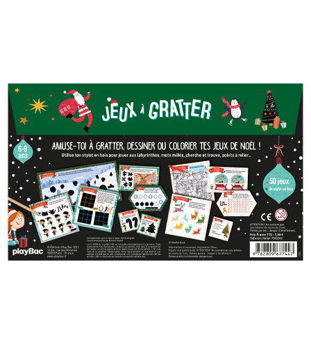 La seule pochette de jeux à gratter réservée aux enfants ! Amuse-toi à gratter, dessiner ou colorier tes jeux de Noël ! Utilise ton stylet en bois pour jouer. Cette pochette contient 50 jeux : labyrinthes, color pixels, points à relier, mots mêlés, cherche et trouve, jeu des différences… Avec son format pratique et ludique, amuse-toi partout, seul ou avec tes copains !