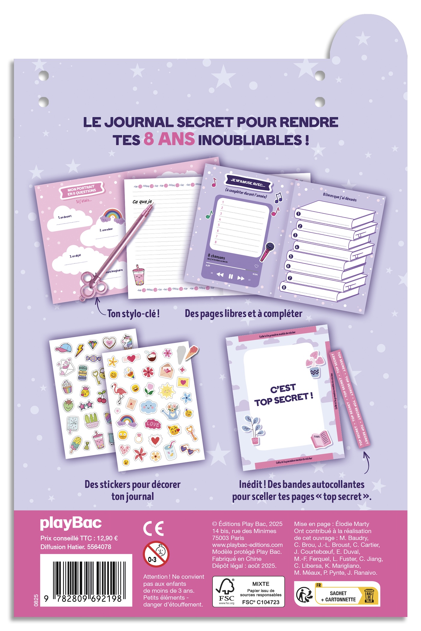 La couverture est décorée d’éléments brillants collés pour un effet scintillant irrésistible. Un design tendance et féérique qui plaira à toutes les filles de 8 ans.