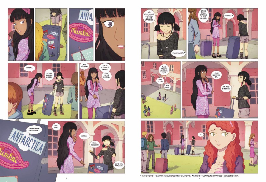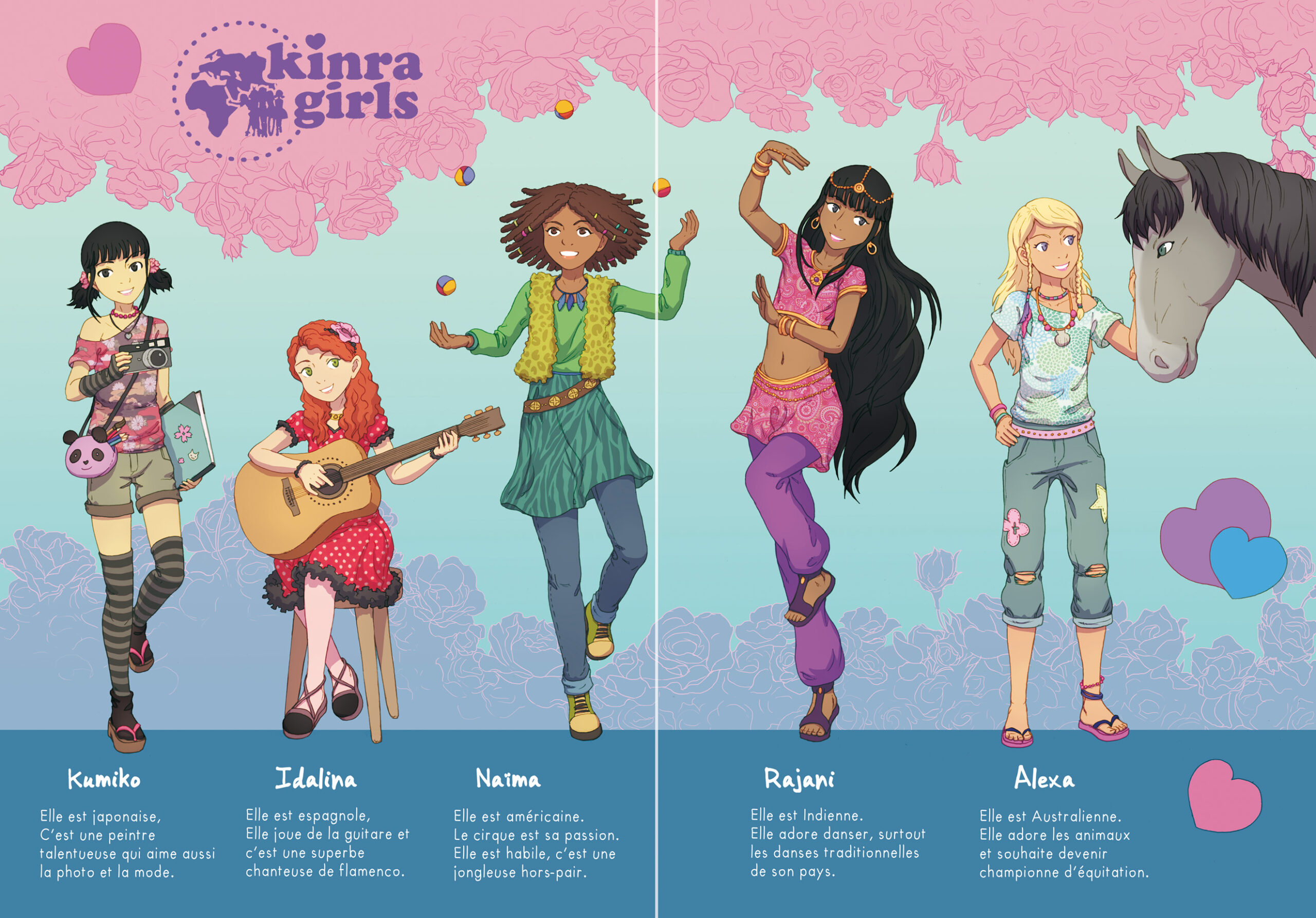 Kumiko est japonaise et aime dessiner. Alexa est australienne. Sa passion, c’est l’équitation. Idalina est espagnole, elle chante à longueur de journée. Rajani est indienne. Son rêve ? Danser. Naïma est américaine. Elle ne vit que pour le cirque. Loin de leur pays, elles font leur rentrée à la prestigieuse académie Bergström. Elles y deviendront amies pour la vie et vivront des aventures incroyables ! D’après la série qui a donné le goût de la lecture à plus de 3 millions de lectrices !
