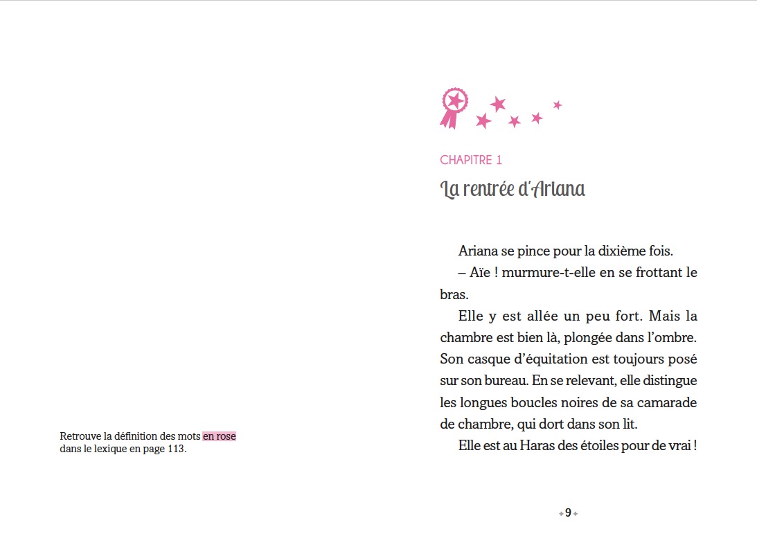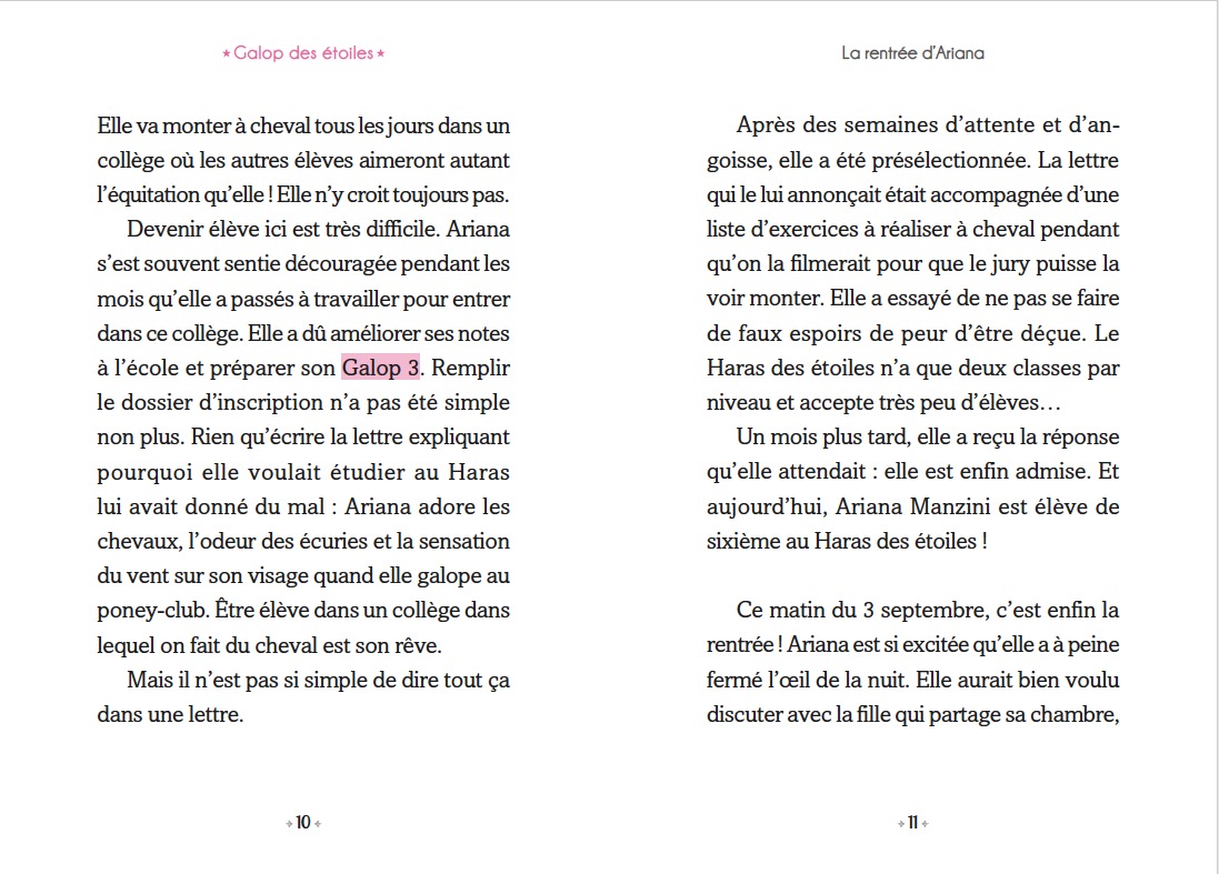 Ariana n'en revient pas : elle entre en 6e au Haras des étoiles, un collège où toutes les après-midi sont consacrées à l'équitation. Le rêve ! Elle y fait la connaissance d'Inès, qui ne dit pas un mot, et d'Epona, qui parle pour deux. Tout va bien jusqu'au jour où Ariana doit monter Summer, la jument rebelle du Haras… Or, dans 1 mois, les professeurs attribueront un cheval à chaque élève pour l'année. Pourvu qu'Ariana ne se retrouve pas avec Summer !