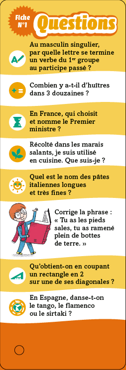 Depuis 1989, Les incollables accompagnent les enfants sur la route de l’apprentissage et du jeu. Les questions-réponses offrent un moment de jeu, de convivialité et de connaissance aussi. Eh oui, car selon nous, on n’apprend jamais mieux que quand on y prend du plaisir ! Dans ce titre : 350 quiz à emporter partout. L’essentiel du programme de CE2 en questions-réponses pour réviser en s’amusant et préparer la rentrée tout en douceur. Les incollables, un concept unique et innovant déjà adopté par plus de 50 millions d’enfants.